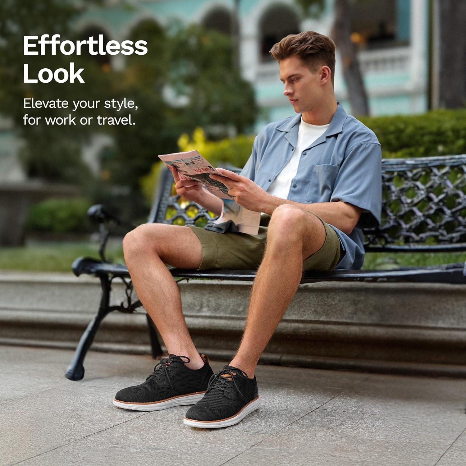 imageBruno Marc Mens KnitFlex Craft Mesh Oxfords Sneakers Casual Dress LaceUp Lightweight Walking Shoes6black