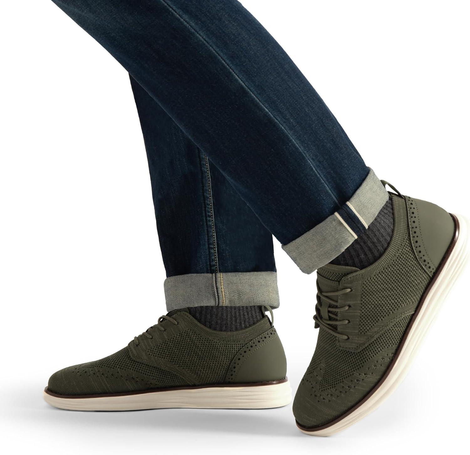 Bruno Marc Men’s KnitFlex Craft Mesh Oxfords Sneakers Casual Dress Lace-Up Lightweight Walking Shoes(6-green)