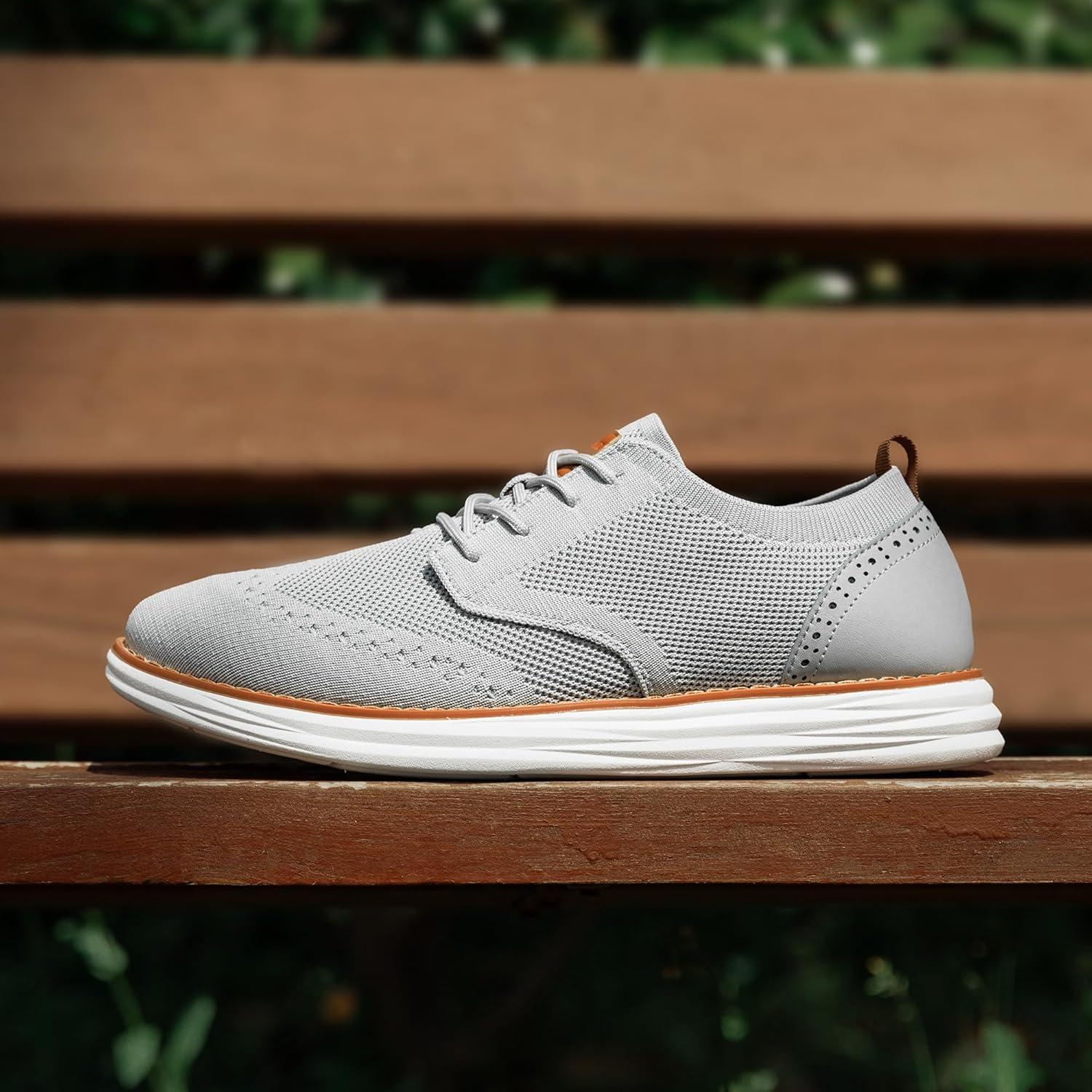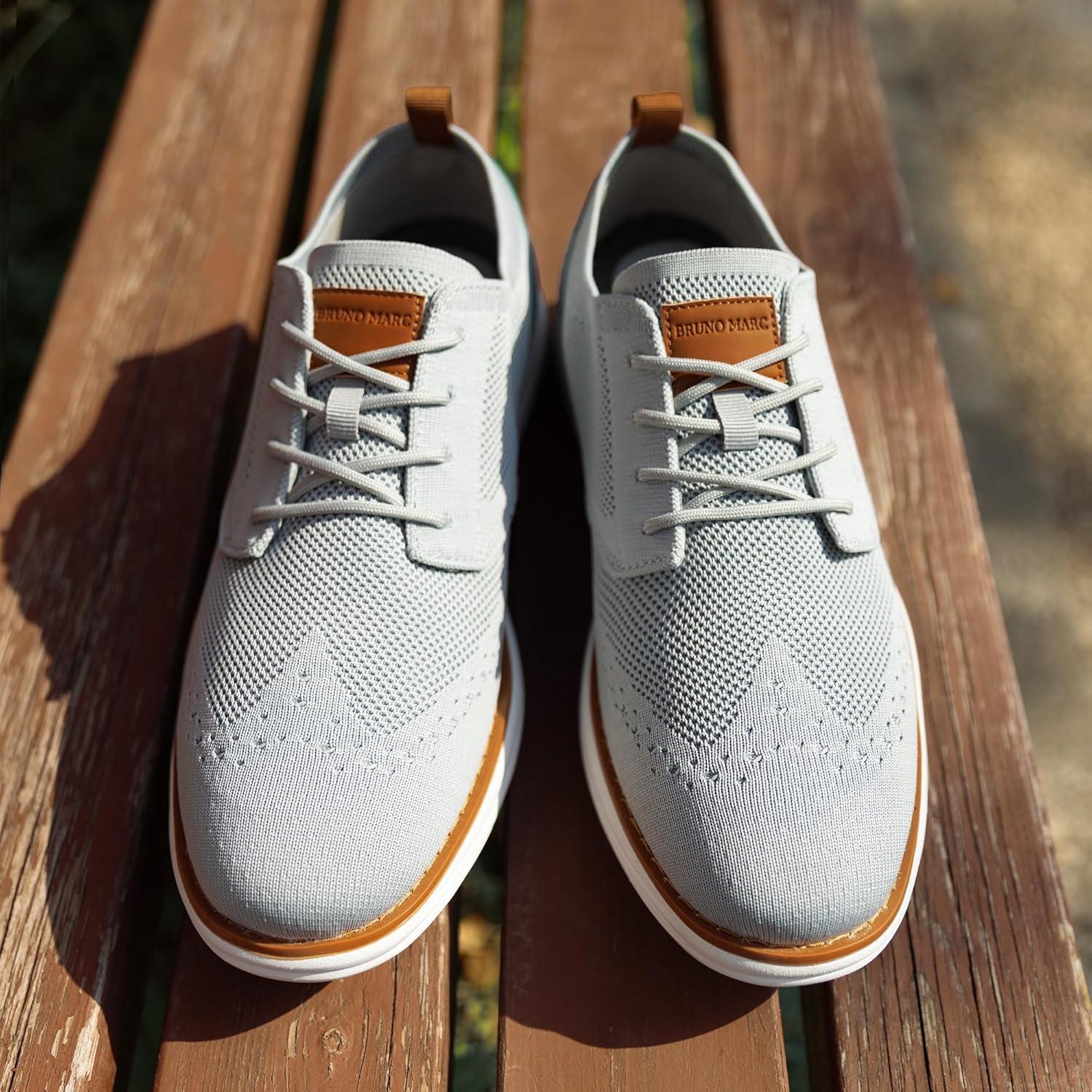 imageBruno Marc Mens KnitFlex Craft Mesh Oxfords Sneakers Casual Dress LaceUp Lightweight Walking Shoes6grey