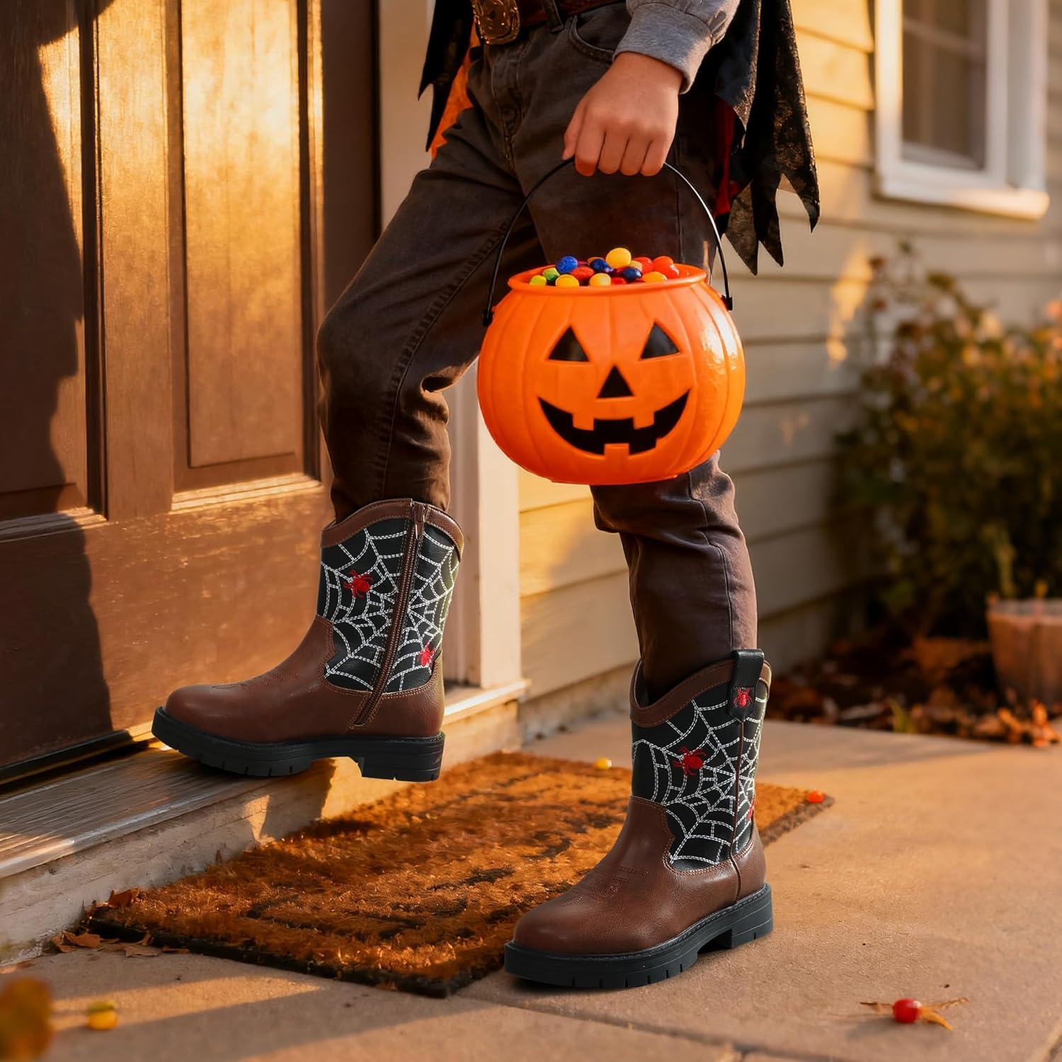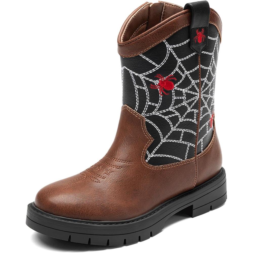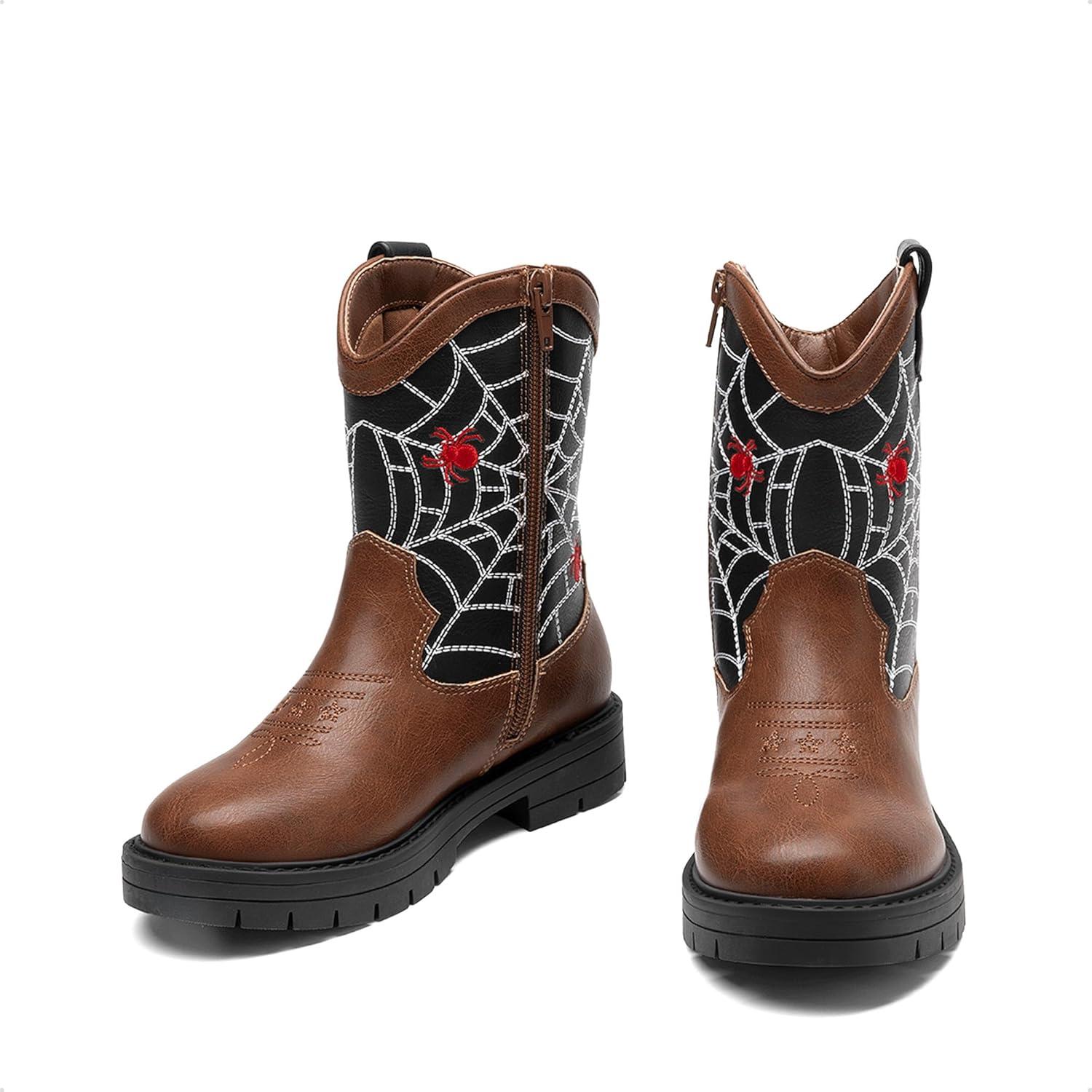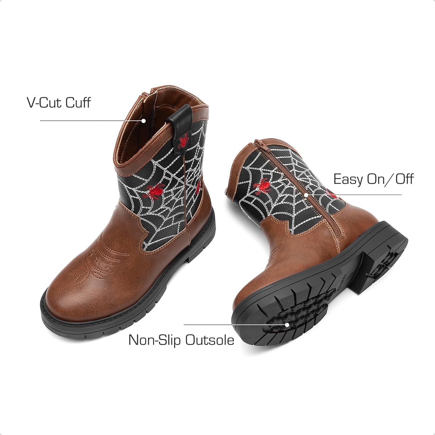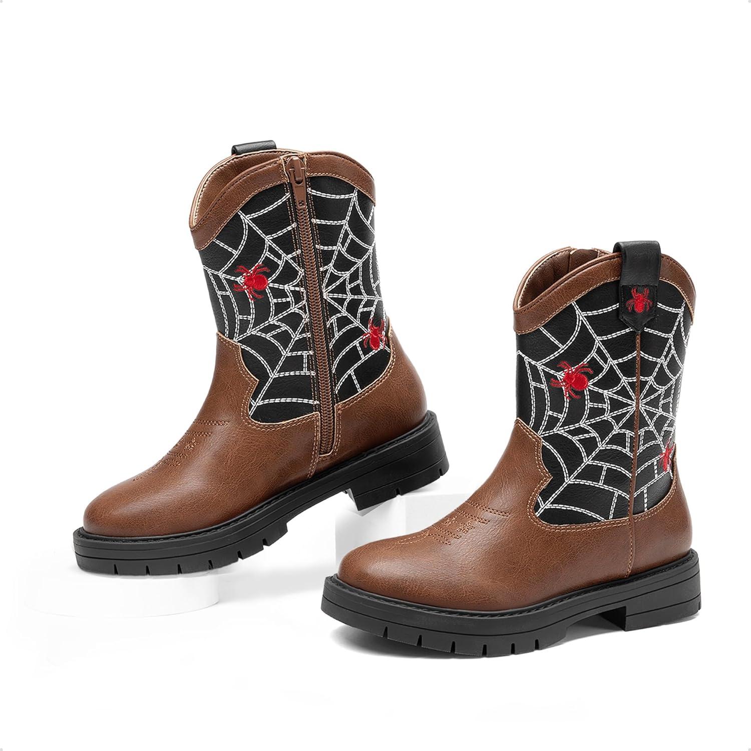 DREAM PAIRS Boys Girls Cowboy Boots Kids Western Riding Mid Calf Boots with Side Zipper (Toddler/Little Kid/Big Kid)(Brown/Black)