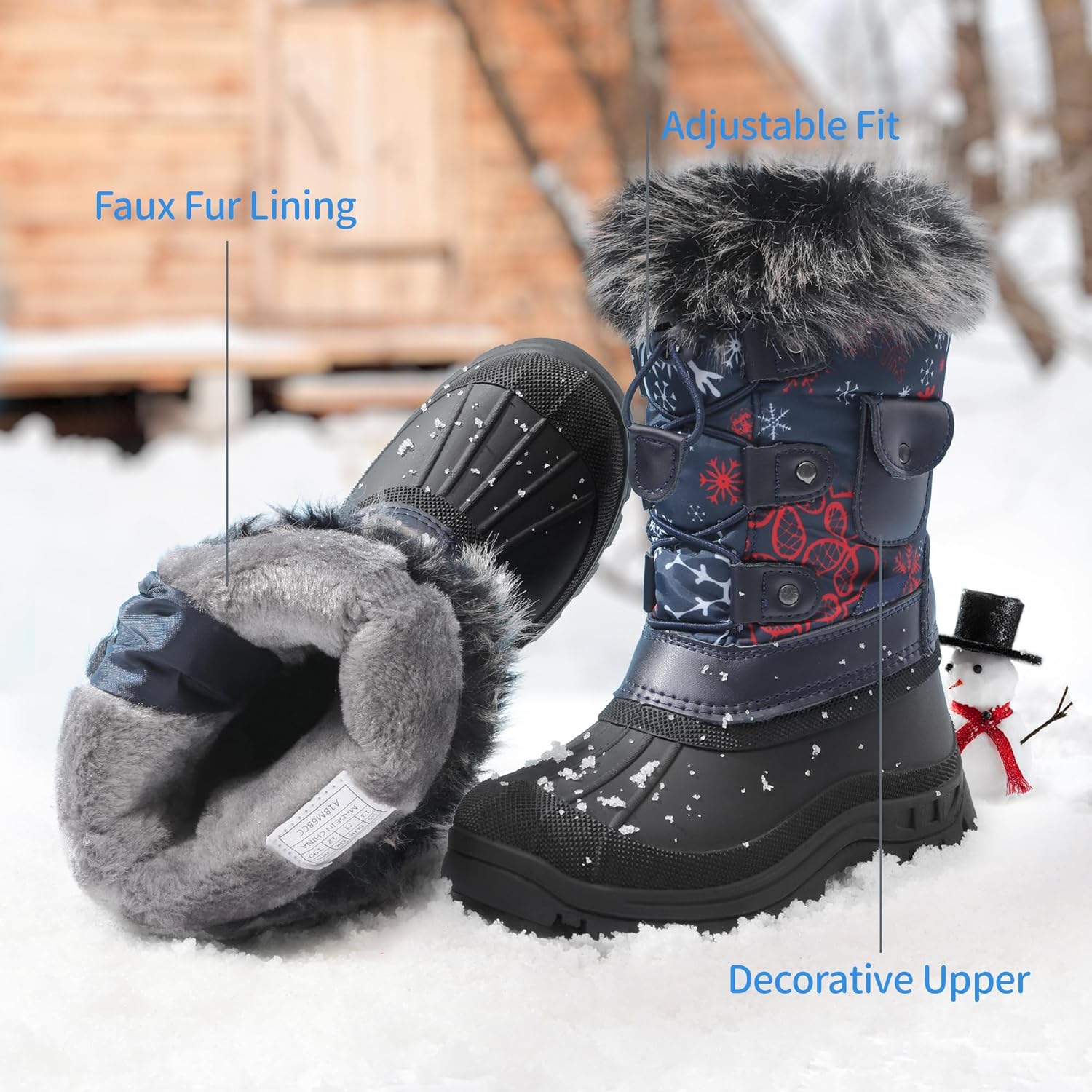 DREAM PAIRS Boys Girls Insulated Waterproof Snow Boots(Navy/Red)