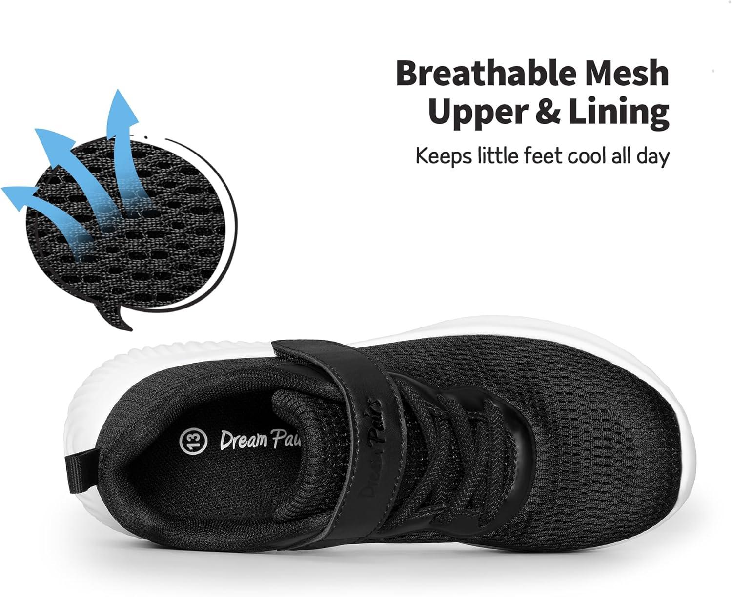 DREAM PAIRS Boys Girls Shoes Kids Tennis EZ-Ons FunRun Breathable Running Athletic Sport Sneakers(Black Monochrome)