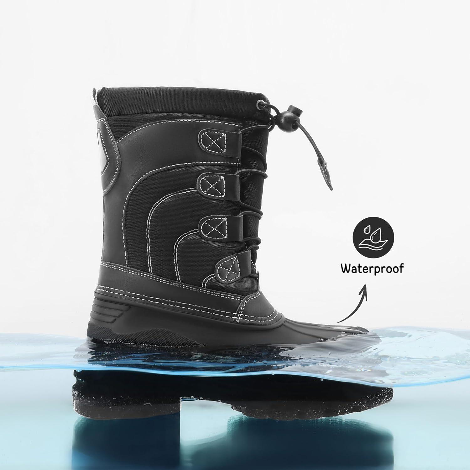 DREAM PAIRS Boys Girls Snow Boots Waterproof Outdoor Warm Cozy Anti-Slip Mid Calf Faux Fur Lining Winter Shoes for Little/Big Kids(Black)