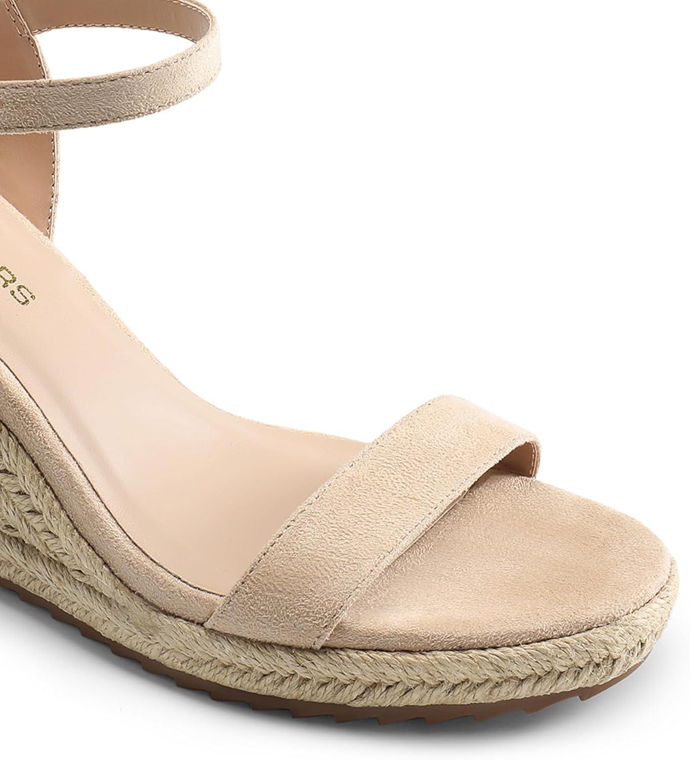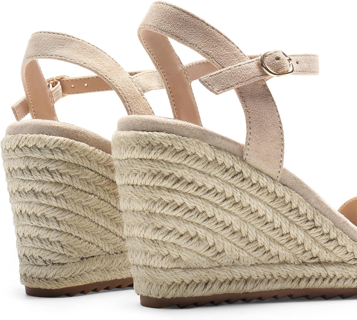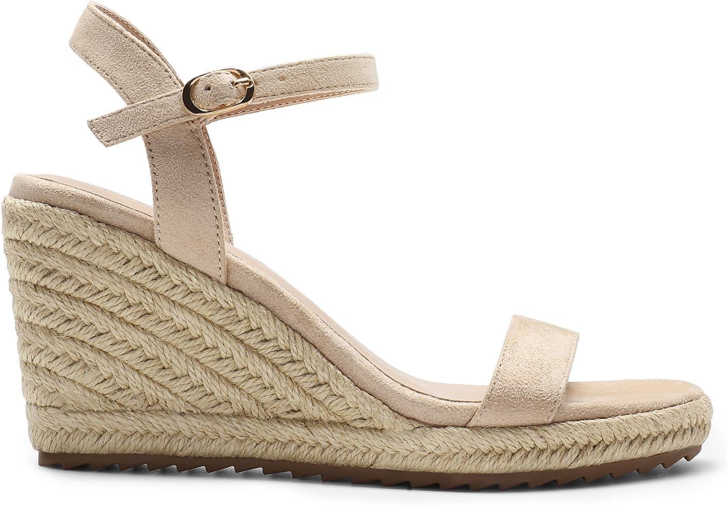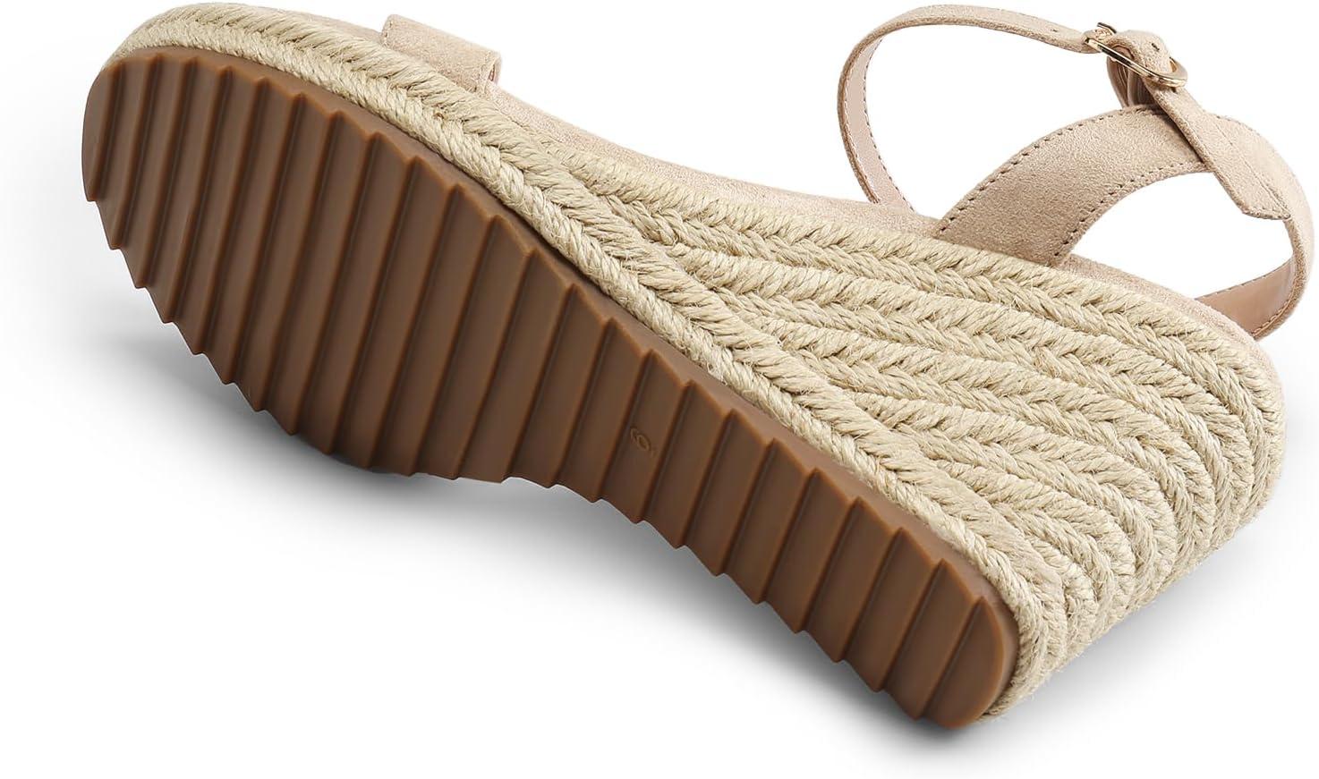 DREAM PAIRS Espadrilles Wedge Sandals for Women, Women's Open Toe Summer Dressy Sandals with Adjustable Ankle Strap and Soft Footbed(Nude)