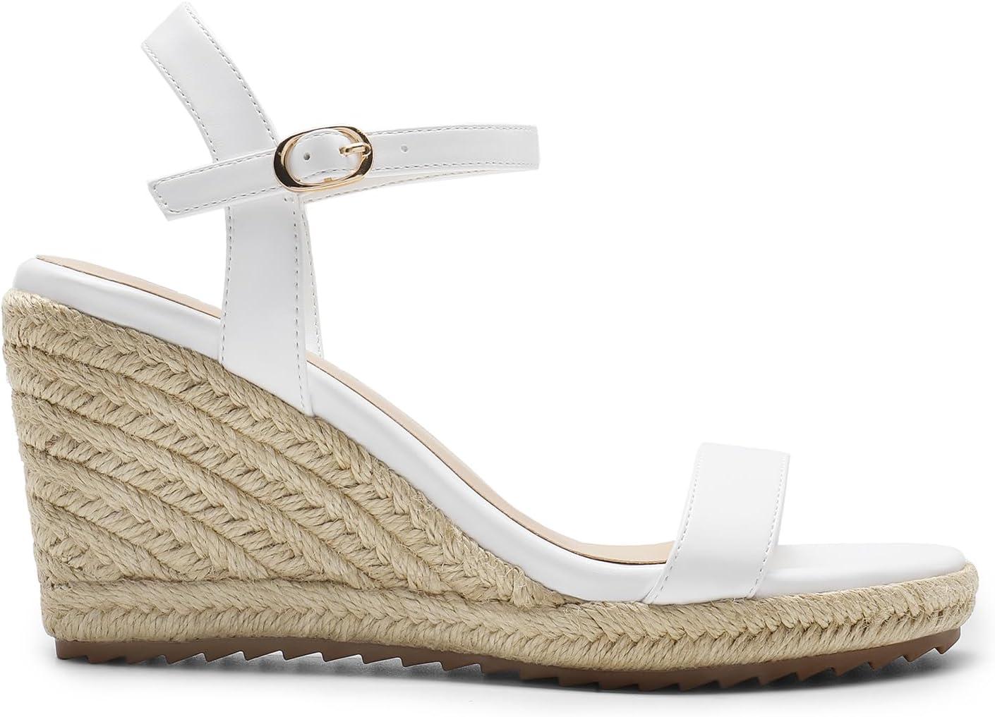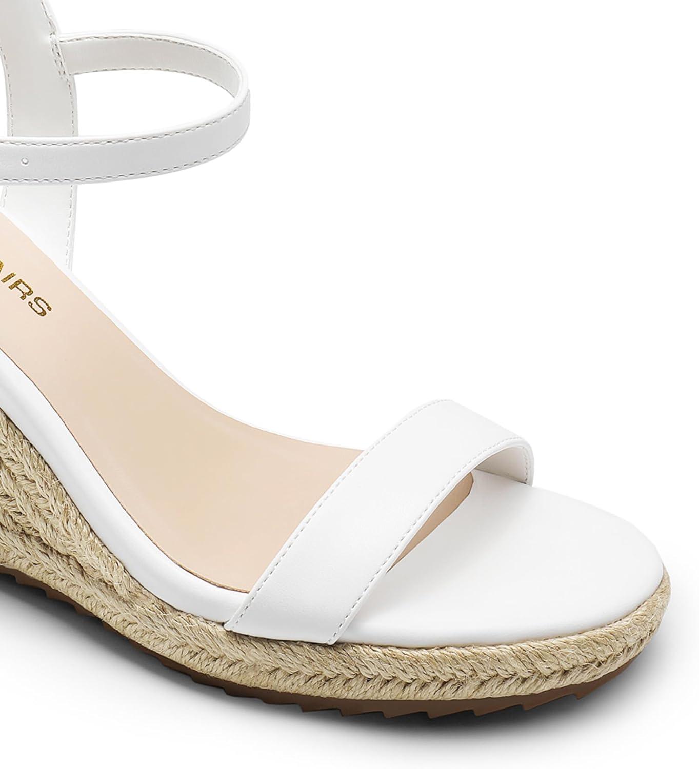 DREAM PAIRS Espadrilles Wedge Sandals for Women, Women’s Open Toe Summer Dressy Sandals with Adjustable Ankle Strap and Soft Footbed(White)