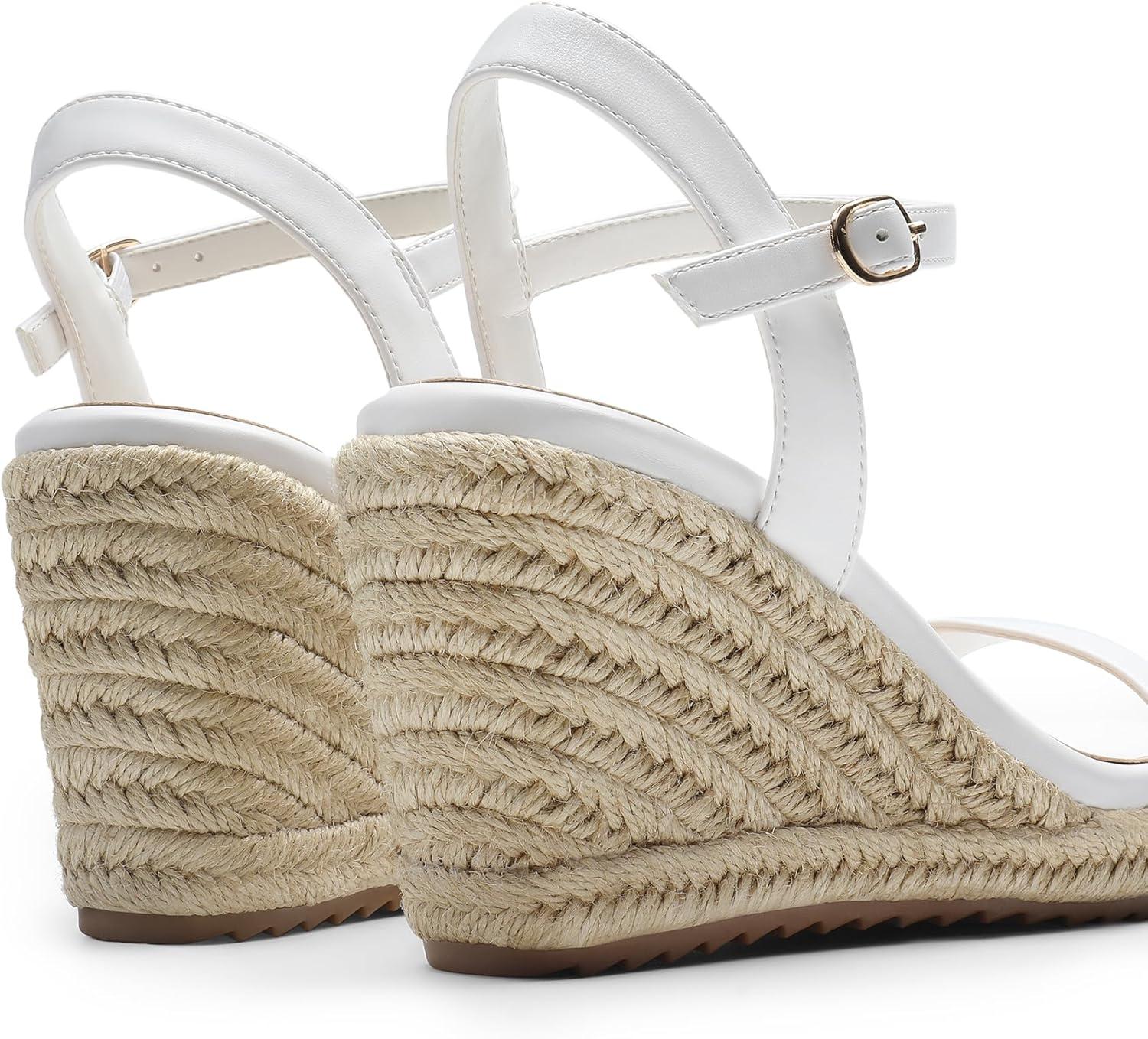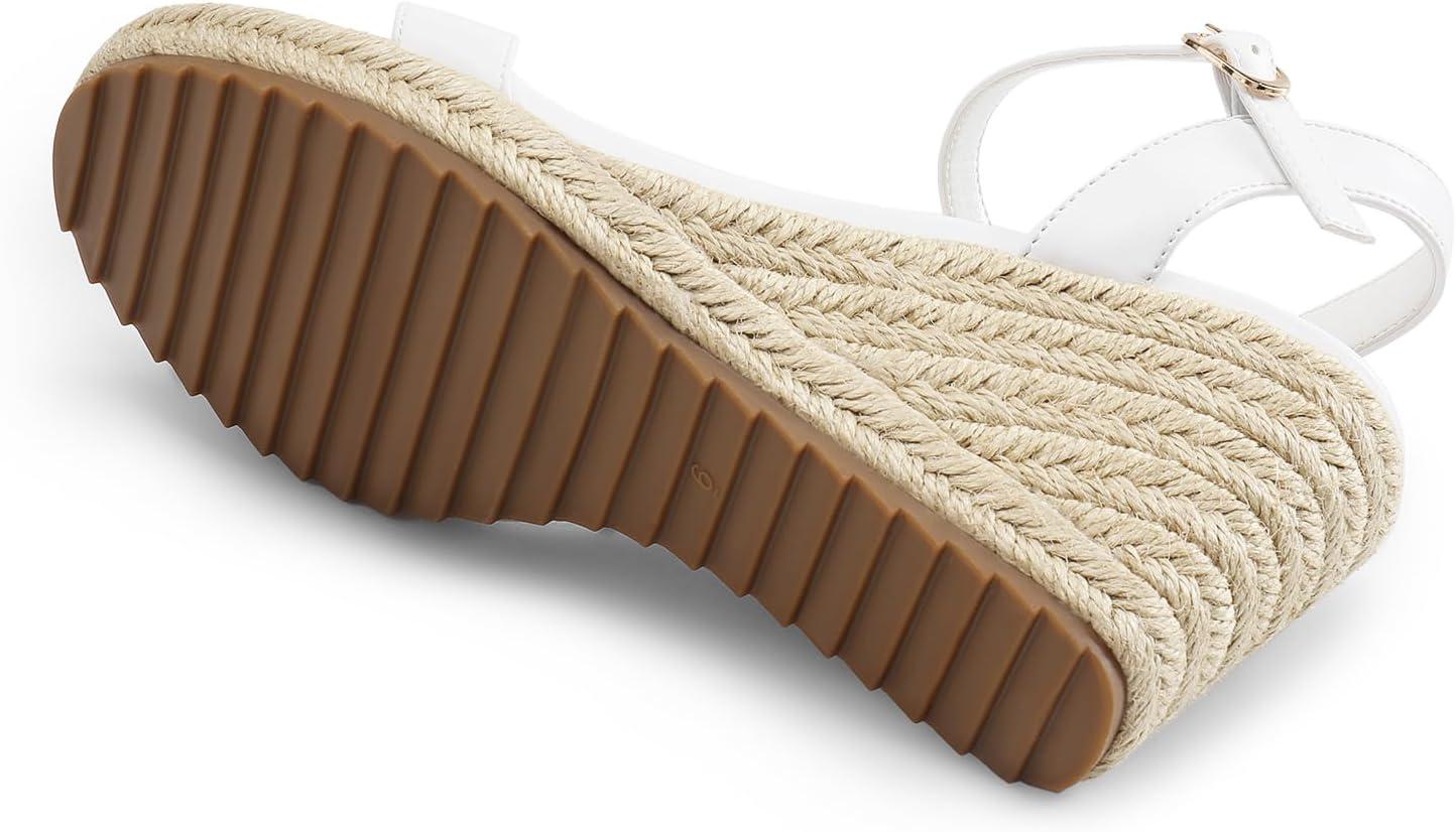 DREAM PAIRS Espadrilles Wedge Sandals for Women, Women's Open Toe Summer Dressy Sandals with Adjustable Ankle Strap and Soft Footbed(White)