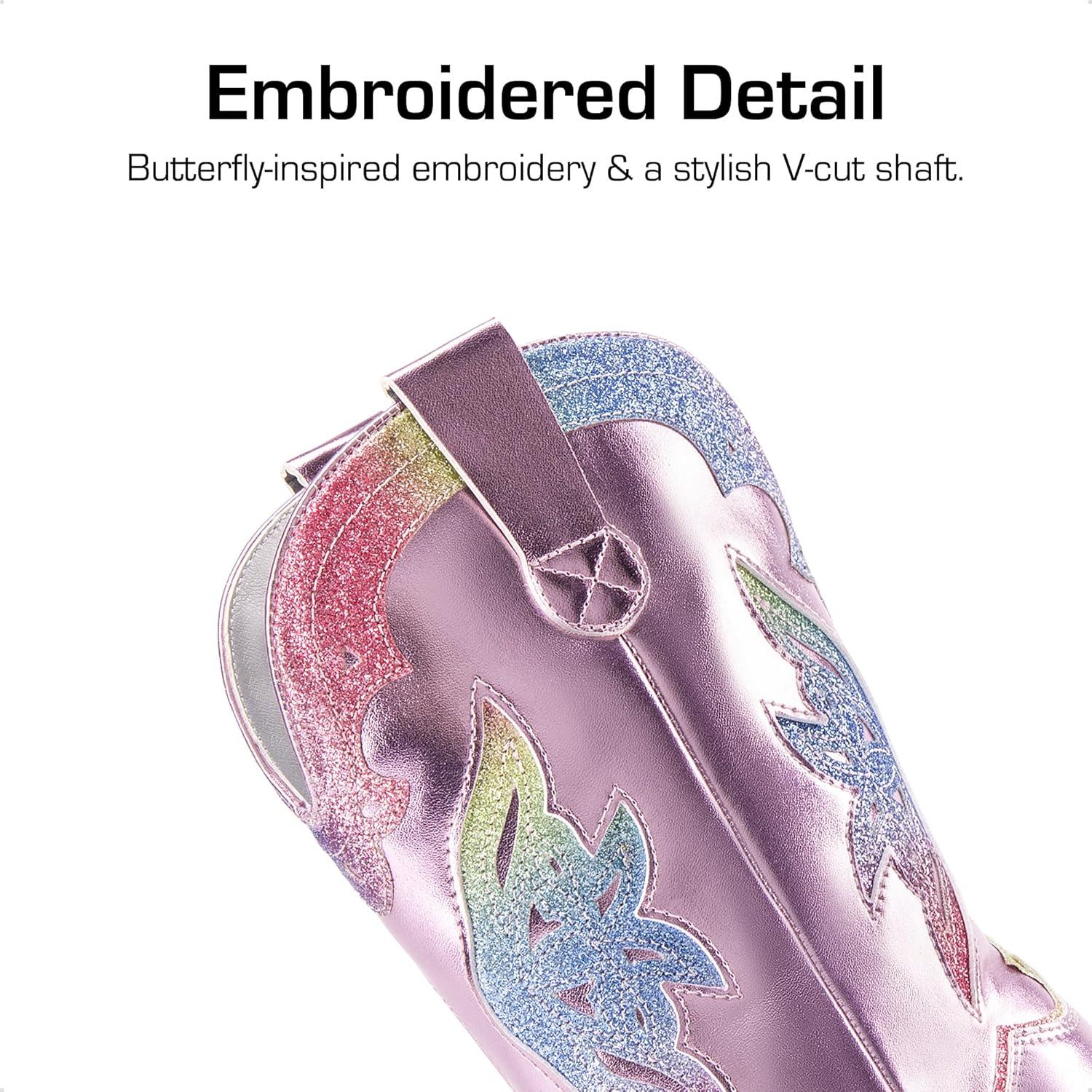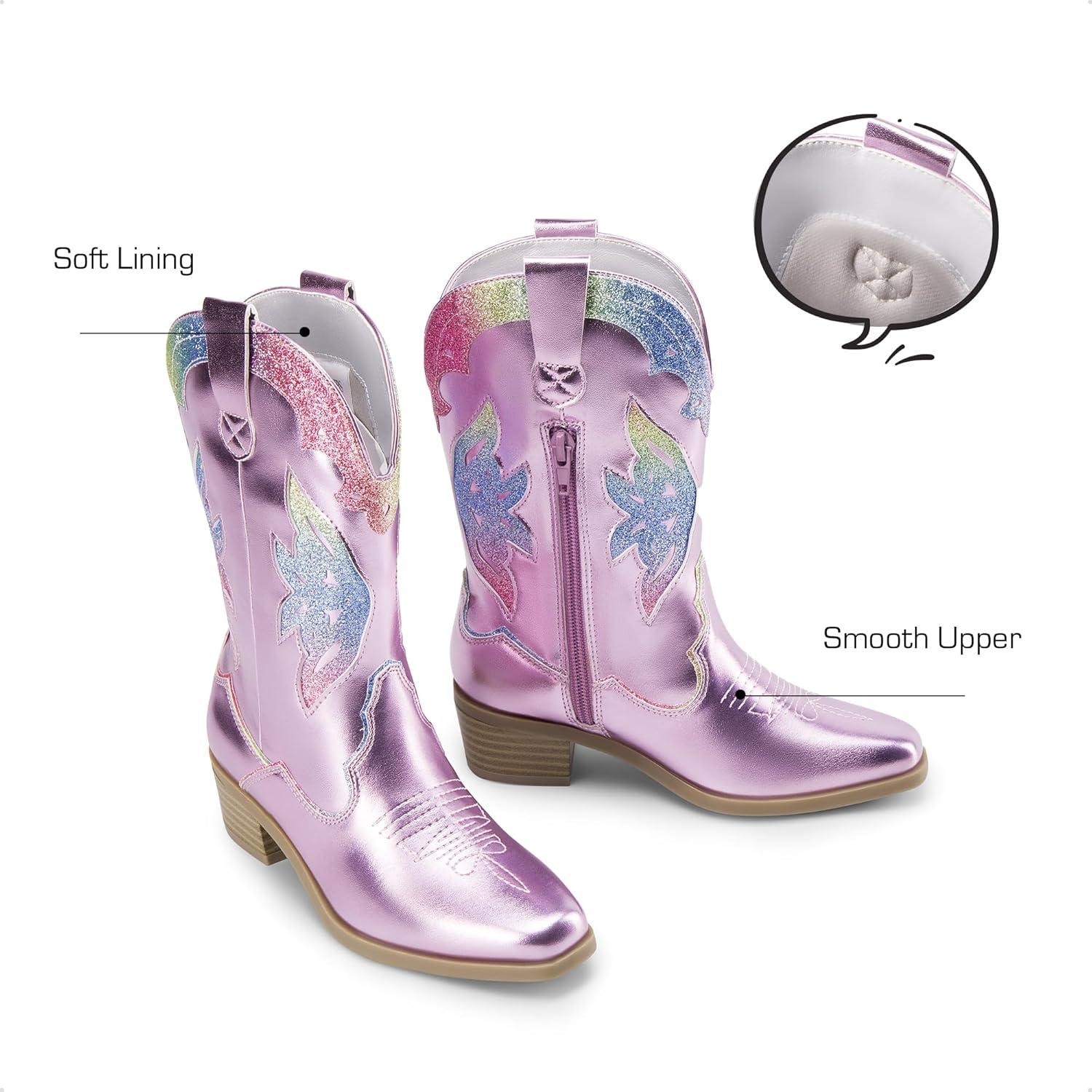 DREAM PAIRS Girls Cowgirl Cowboy Boots Western Fashion Mid Calf Boots(Pink/Rainbow)