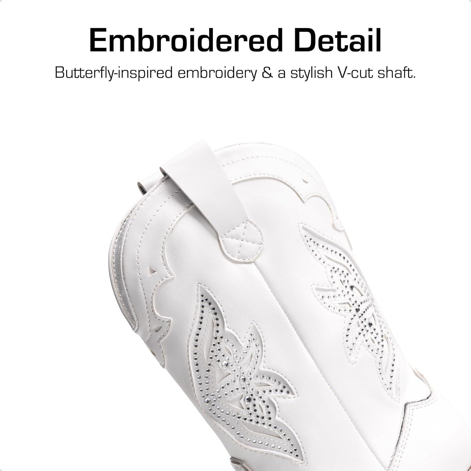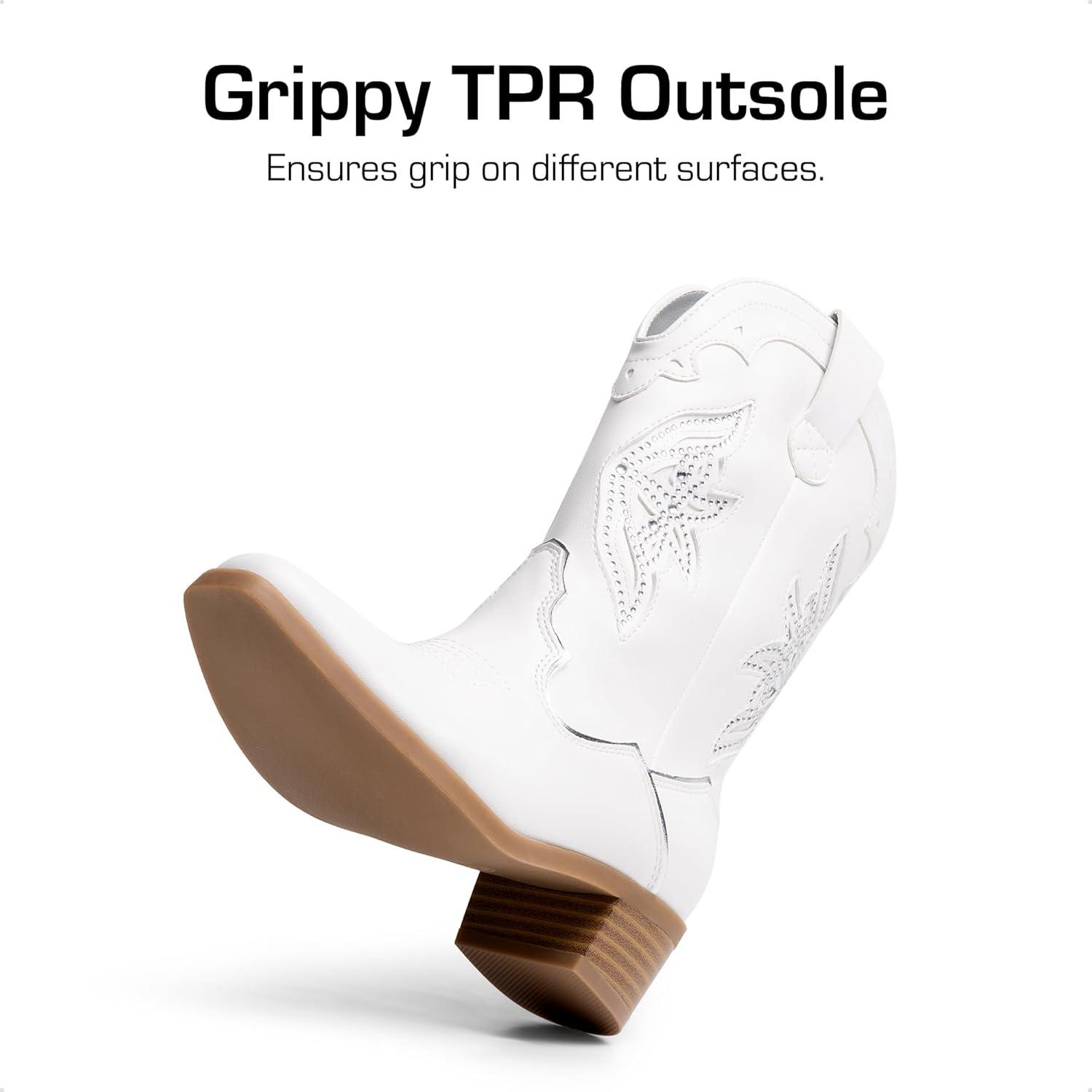 DREAM PAIRS Girls Cowgirl Cowboy Boots Western Fashion Mid Calf Boots(White)