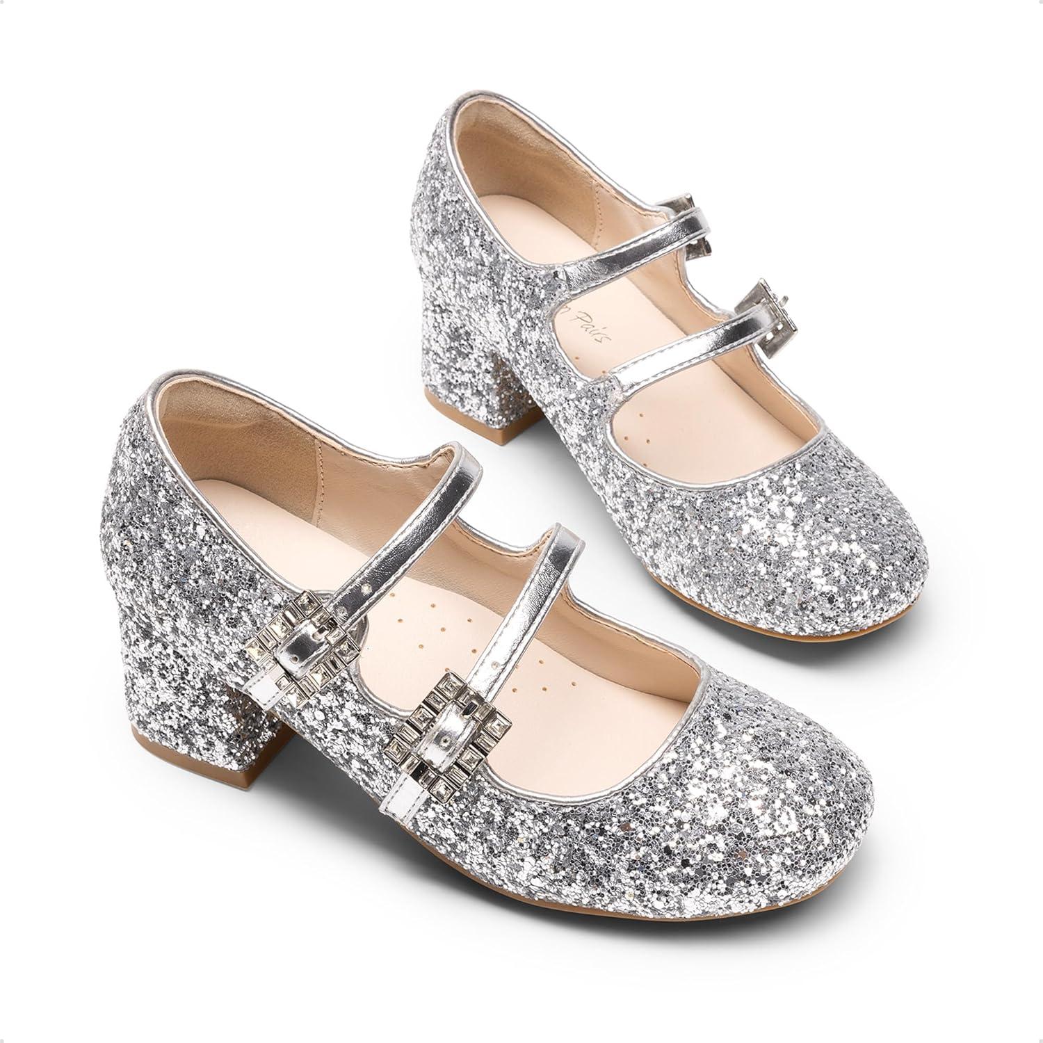 DREAM PAIRS Girls Dress Shoes Mary Jane Double Straps High Heel Easter Wedding Party Church Princess Communion Pumps for Little/Big Kids(Silver)