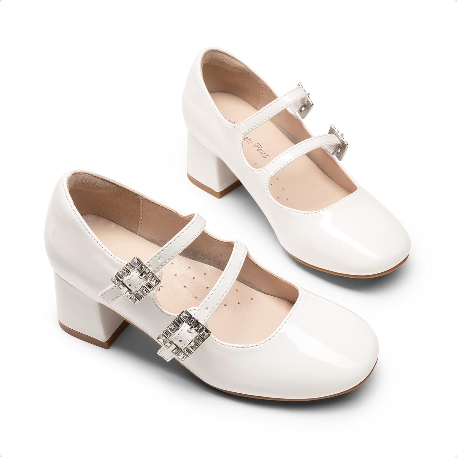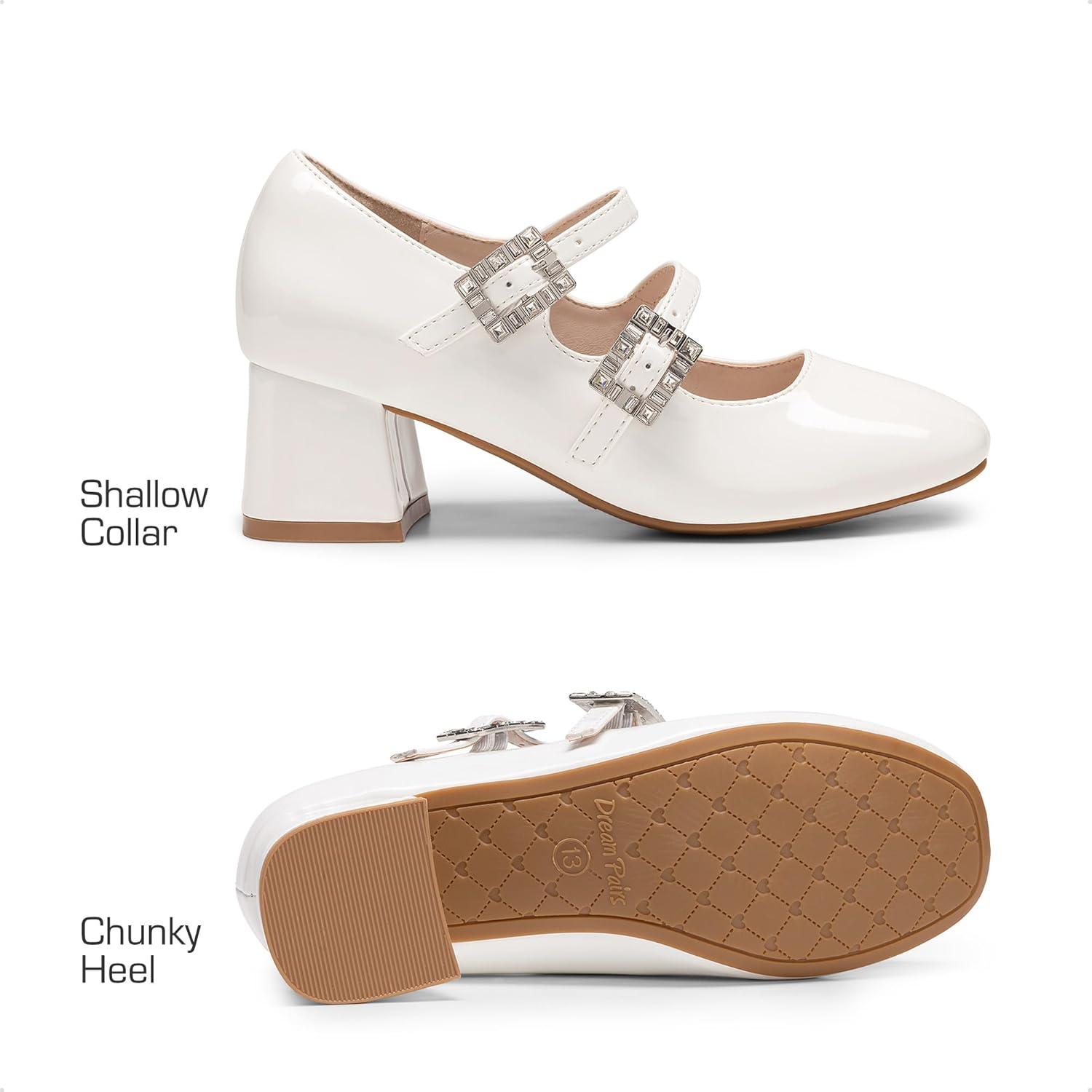 DREAM PAIRS Girls Dress Shoes Mary Jane Double Straps High Heel Easter Wedding Party Church Princess Communion Pumps for Little/Big Kids(White)