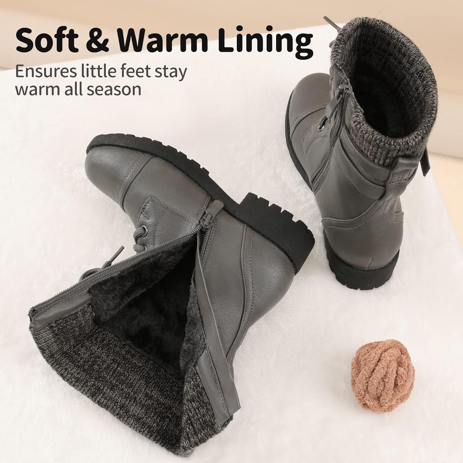 DREAM PAIRS Girl’s Mid Calf Combat Ankle Lace up Boots(Grey)