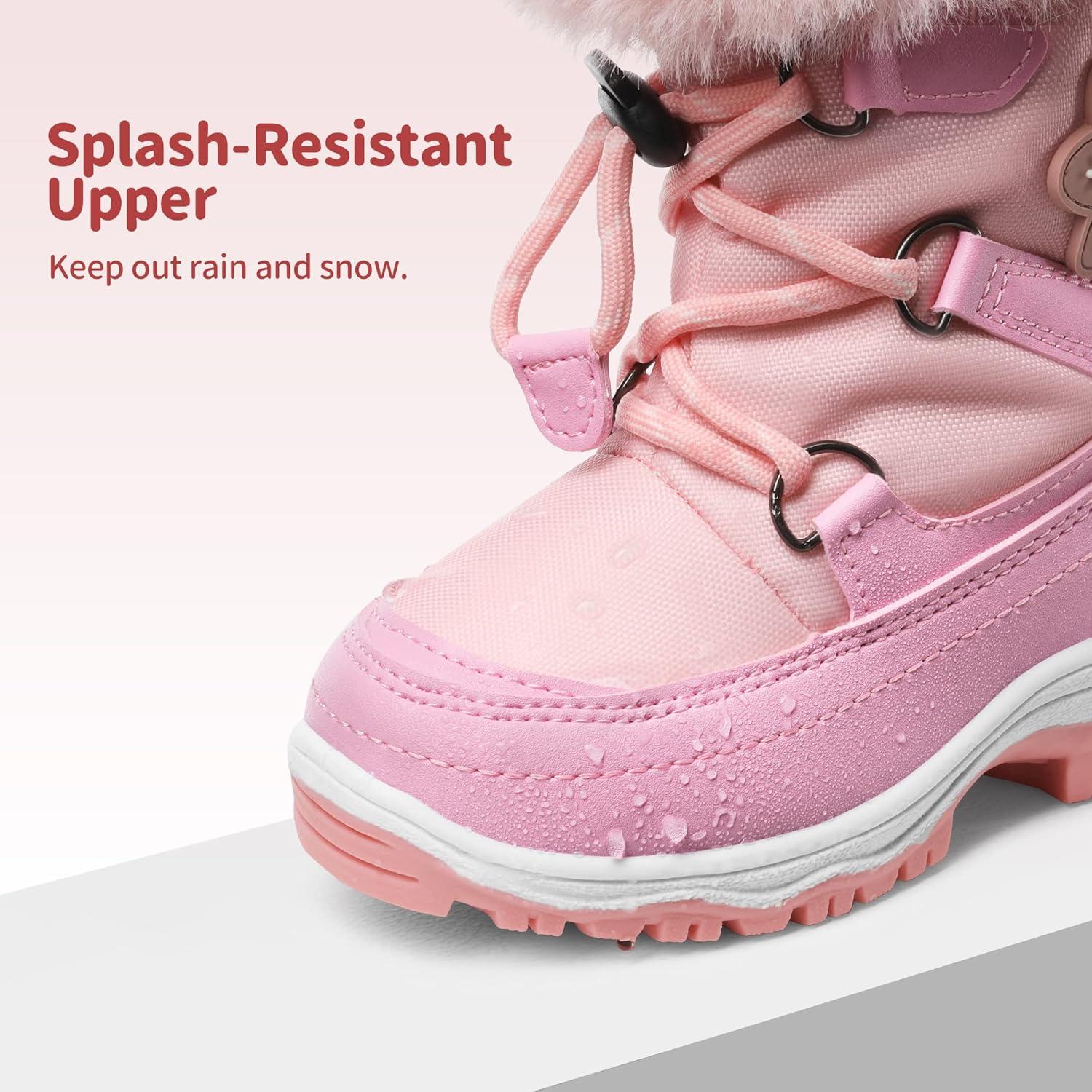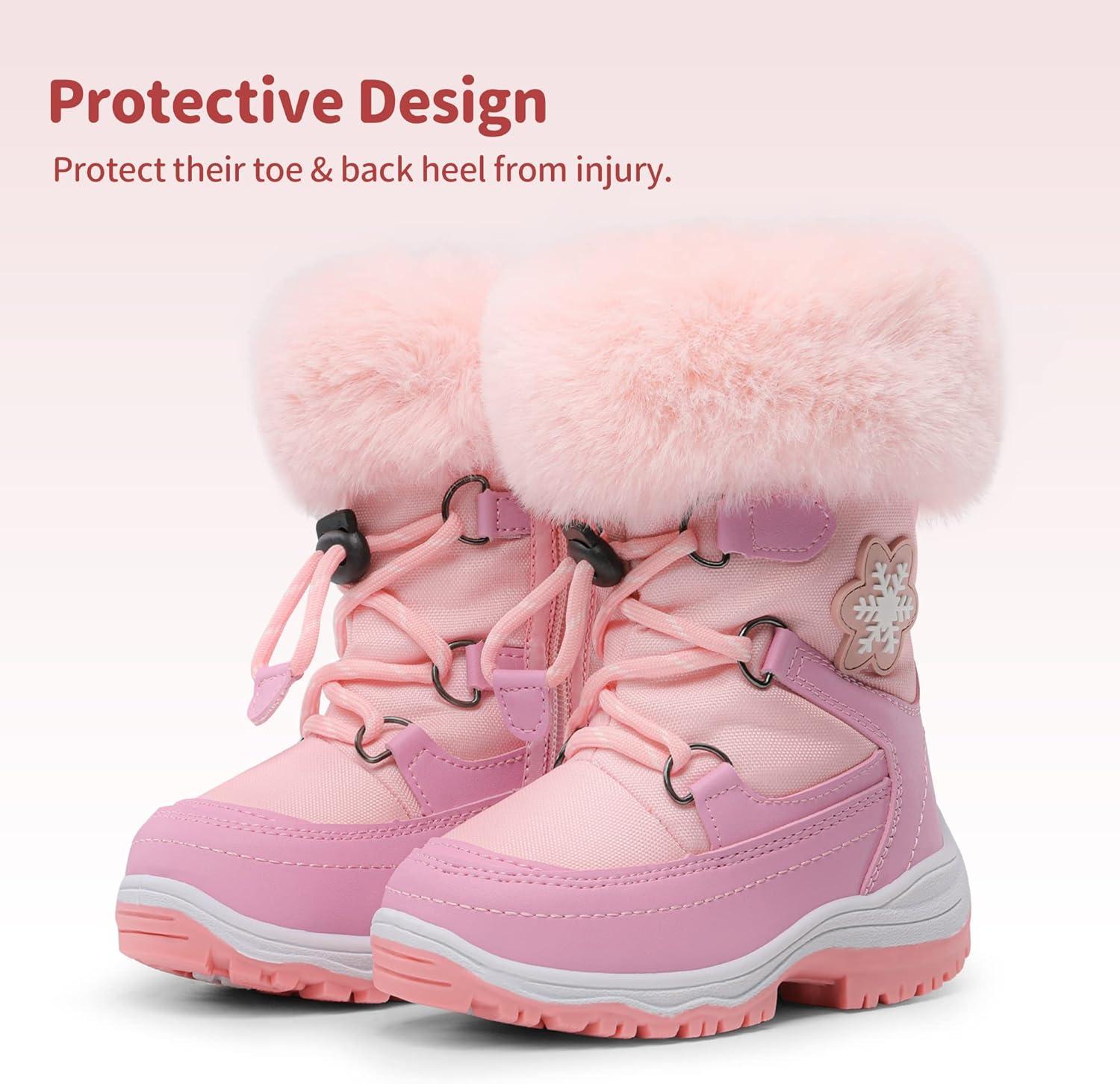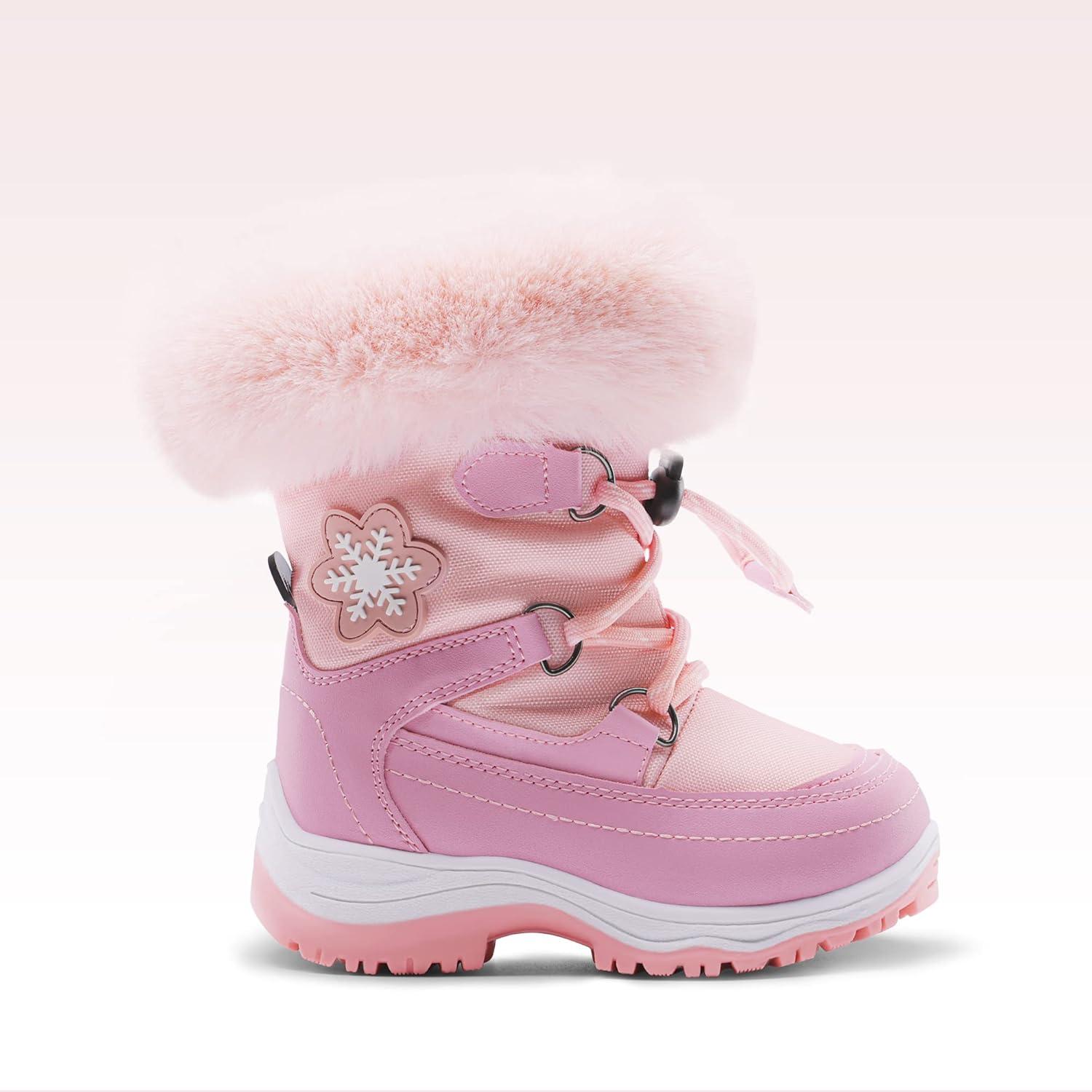 DREAM PAIRS Girls Toddler Snow Boots Slip Resistant Faux Fur Lined Mid Calf Little Kids Winter Shoes(Pink)