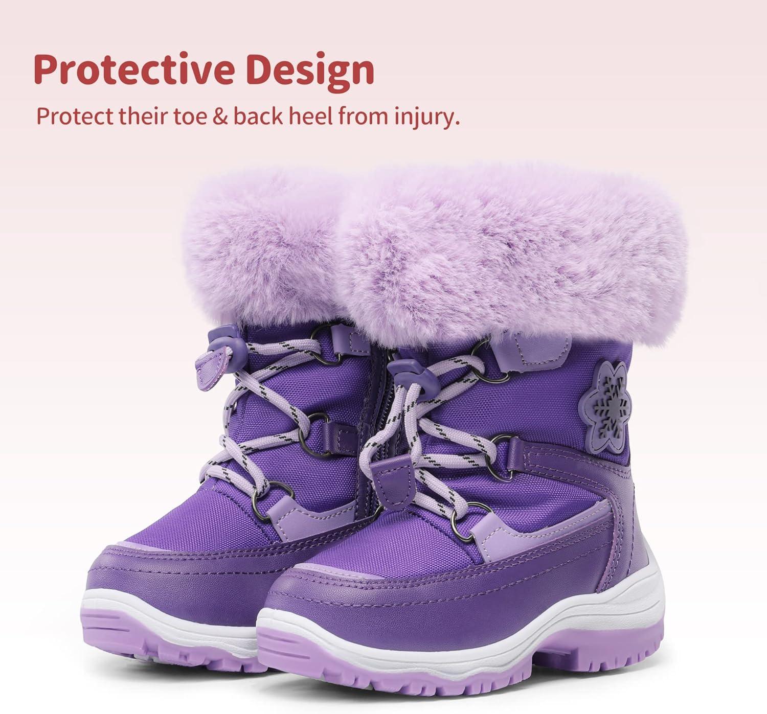 DREAM PAIRS Girls Toddler Snow Boots Slip Resistant Faux Fur Lined Mid Calf Little Kids Winter Shoes(Purple)