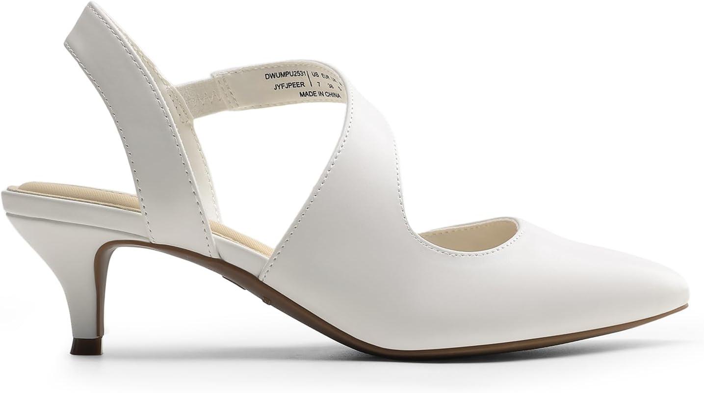 DREAM PAIRS Kitten Heels for Women Closed Toe Pointed Toe Low Heel Strappy Pumps Party Dance Wedding Dress Shoes for Women(White)