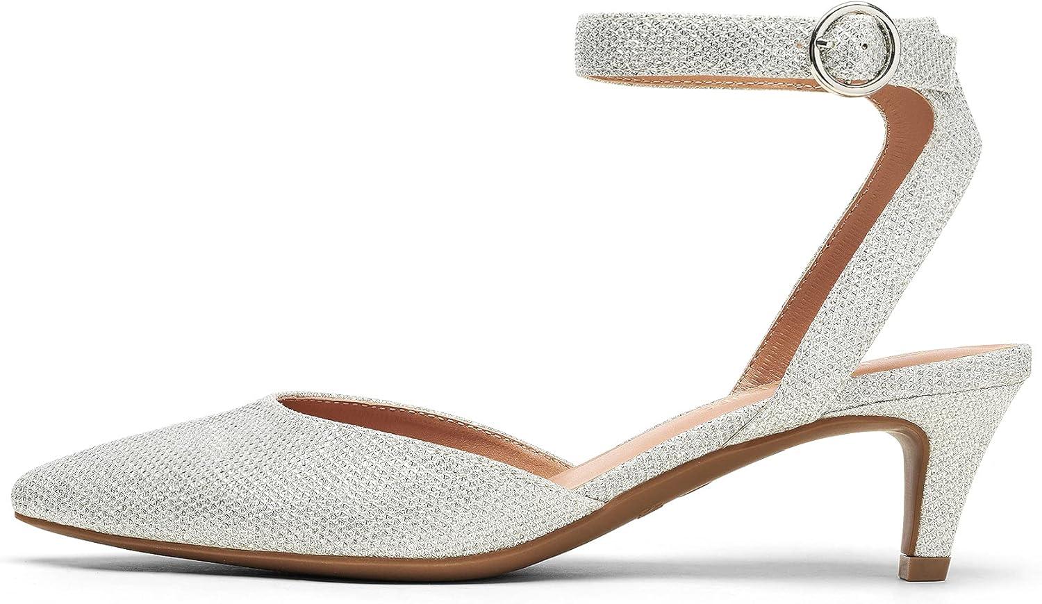 DREAM PAIRS Kitten Heels for Women Low Heel Dress Shoes Wedding Dress Closed Toe Pump Shoes Luna(Silver/Glitter)