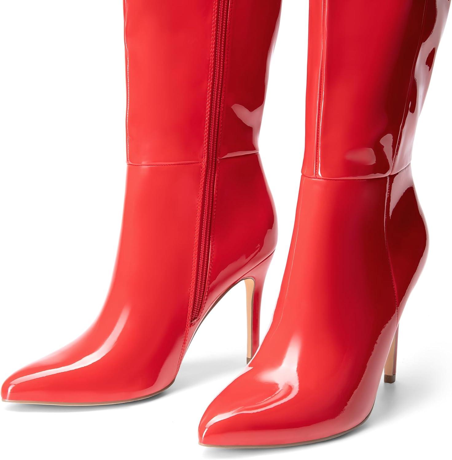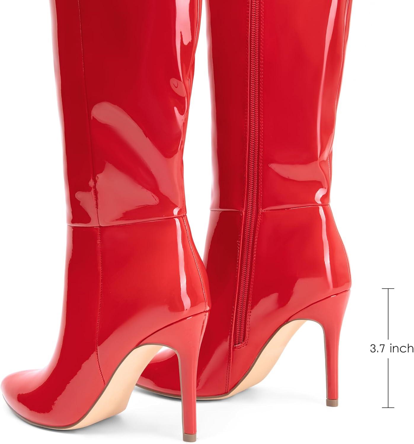 DREAM PAIRS Knee High Boots for Women, Sexy Pointed Toe Stiletto High Heel Boots, Fashion & Classic Dress Shoes(Red-pat)