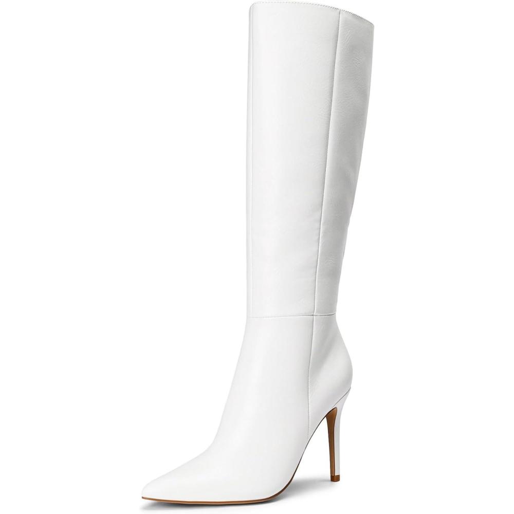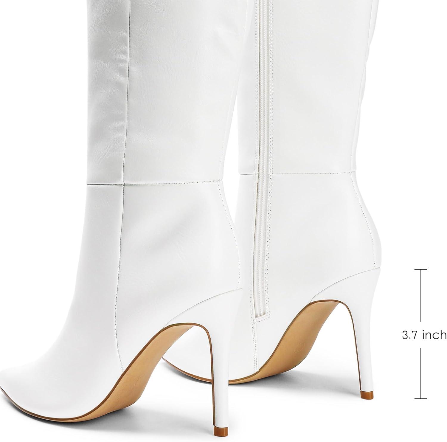 DREAM PAIRS Knee High Boots for Women, Sexy Pointed Toe Stiletto High Heel Boots, Fashion & Classic Dress Shoes(White-pu)