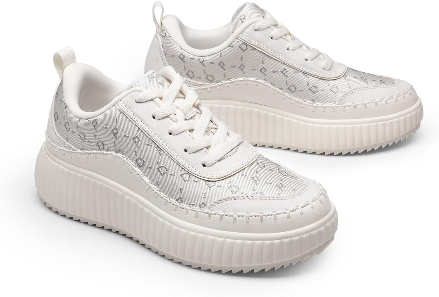 DREAM PAIRS Women Chunky City Tweed Comfortable Casual Platform Fashion Sneaker(Beige)