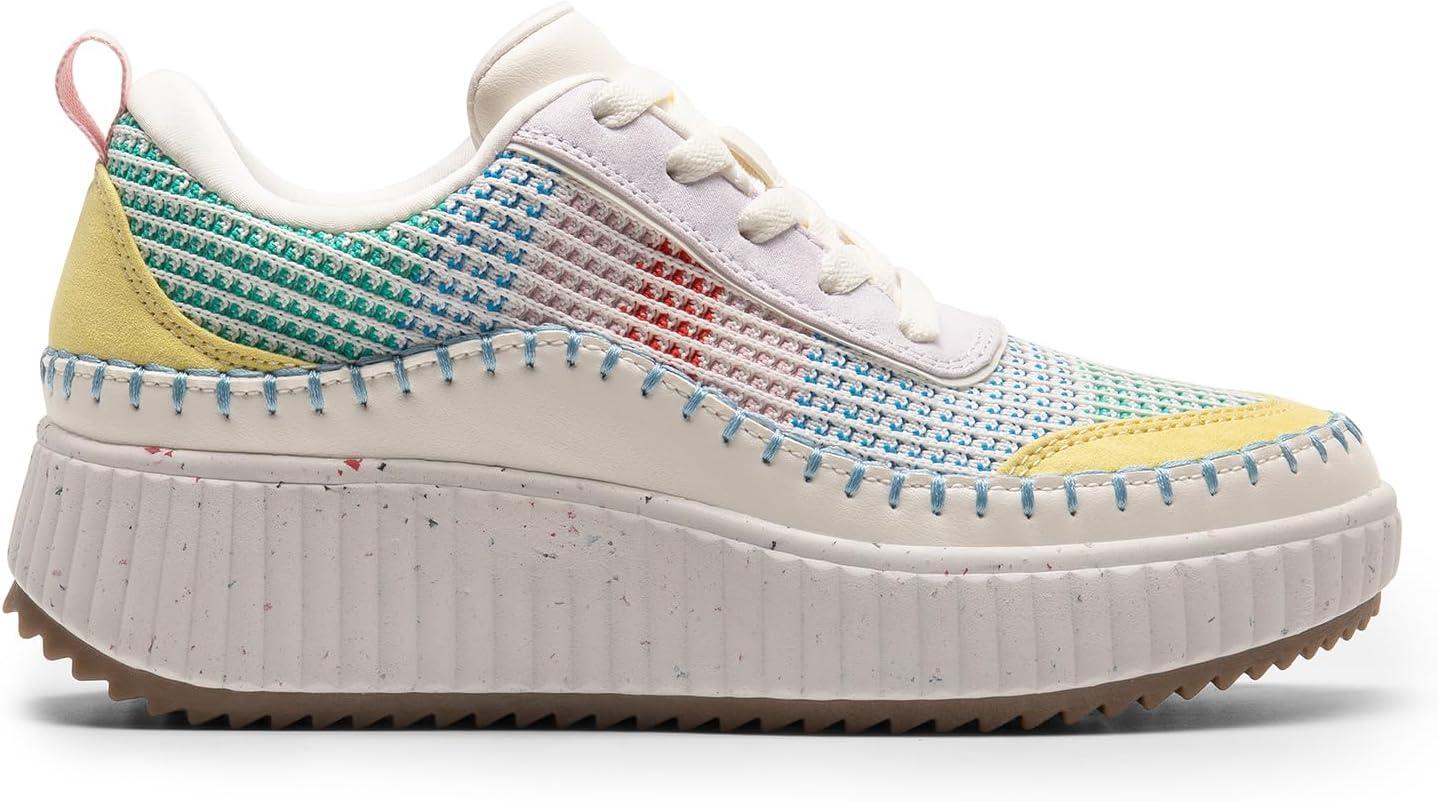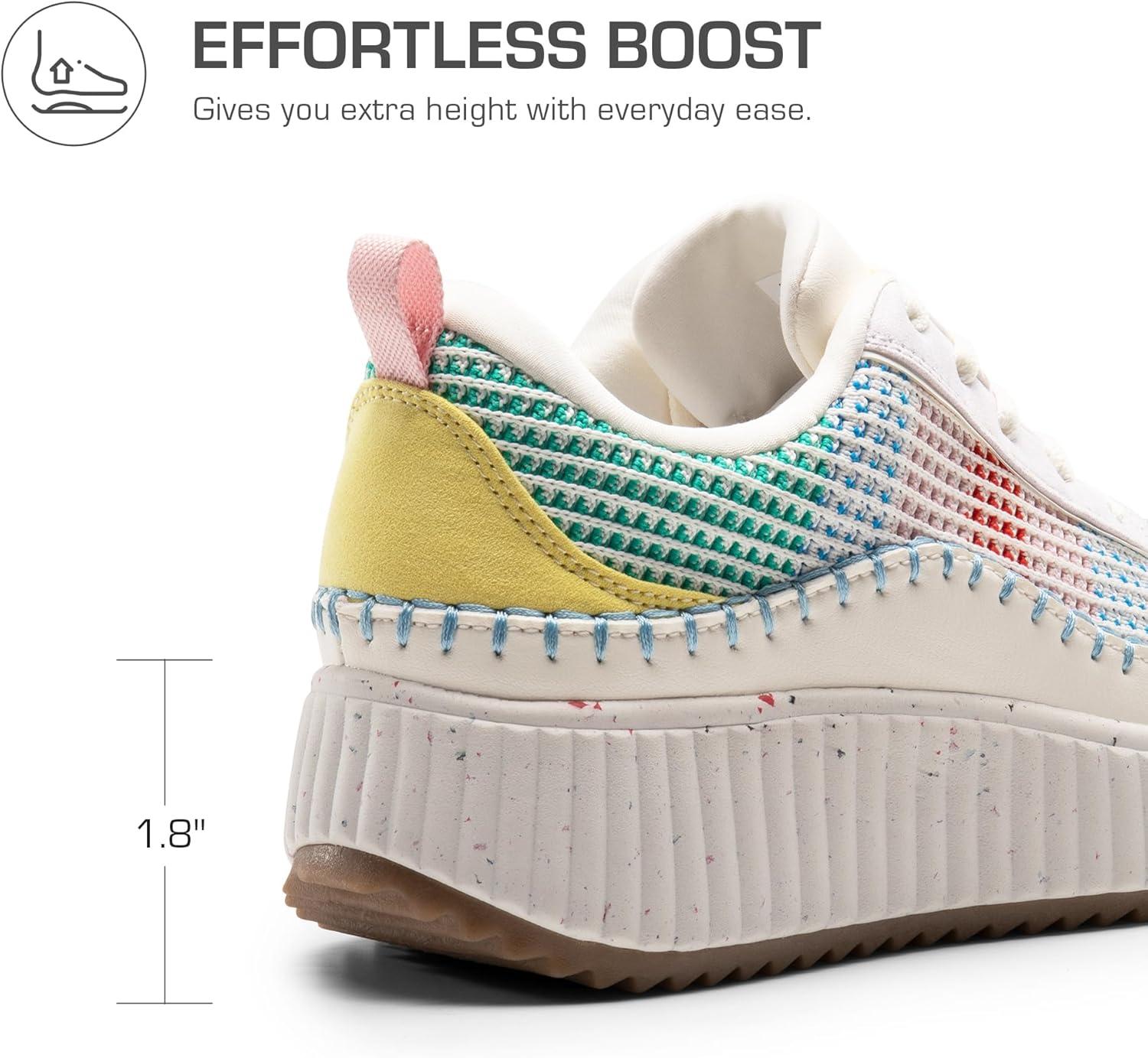 DREAM PAIRS Women Chunky City Tweed Comfortable Casual Platform Fashion Sneaker(White/Rainbow)