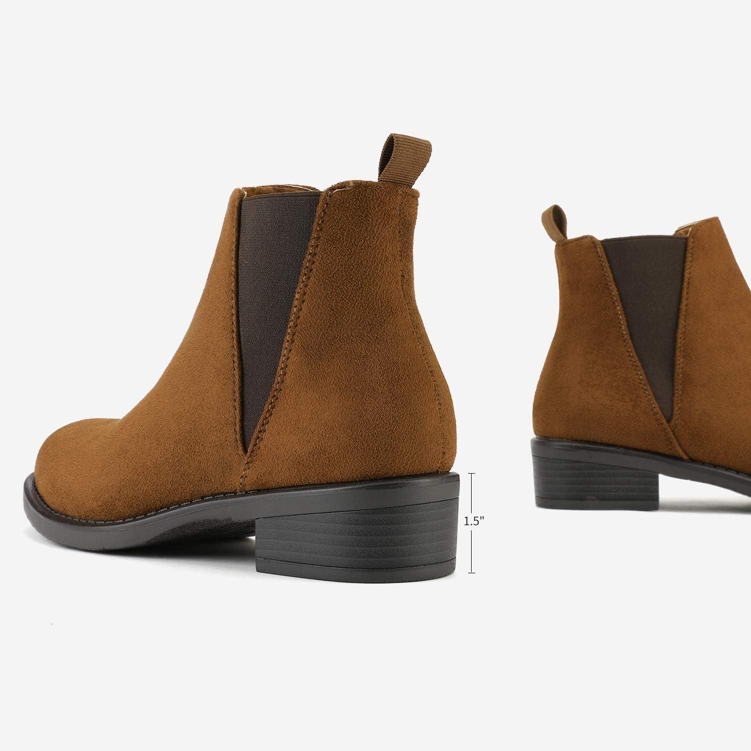 DREAM PAIRS Women’s Ankle Boots Chunky Low Heel Chelsea Booties Slip On Elastic Fall Short Boots(Brown/Pu)