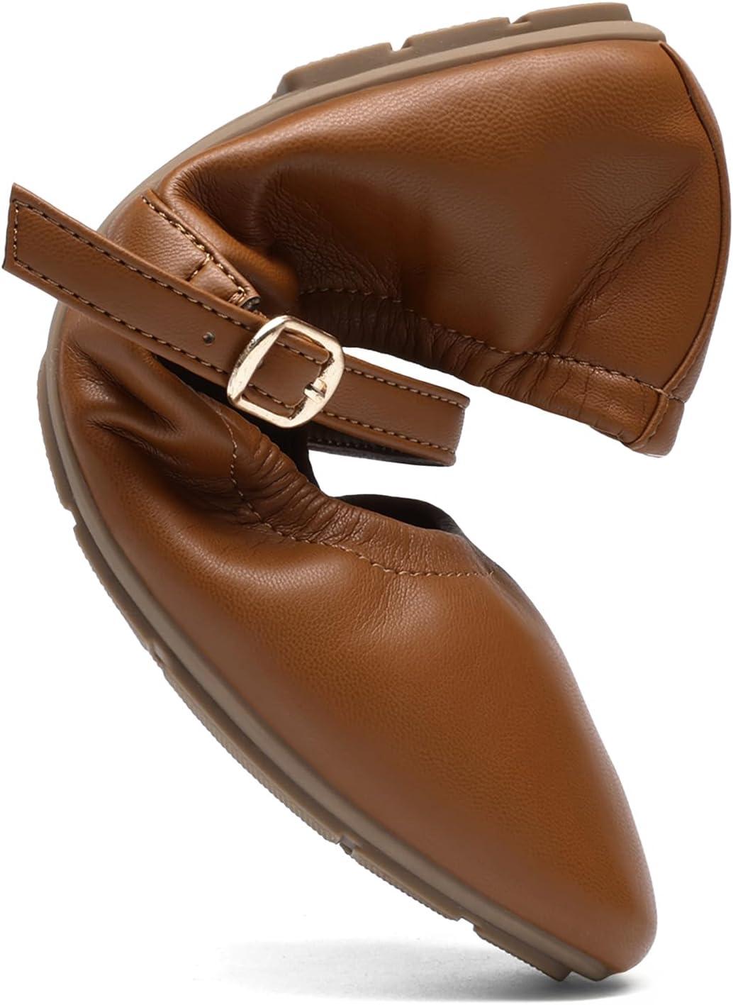 DREAM PAIRS Women's Ballet Flats Foldable Square Toe Mary Jane Flats Comfortable Slip On Dress Shoes Business Casual Work Mary Jane Shoes(Brown)
