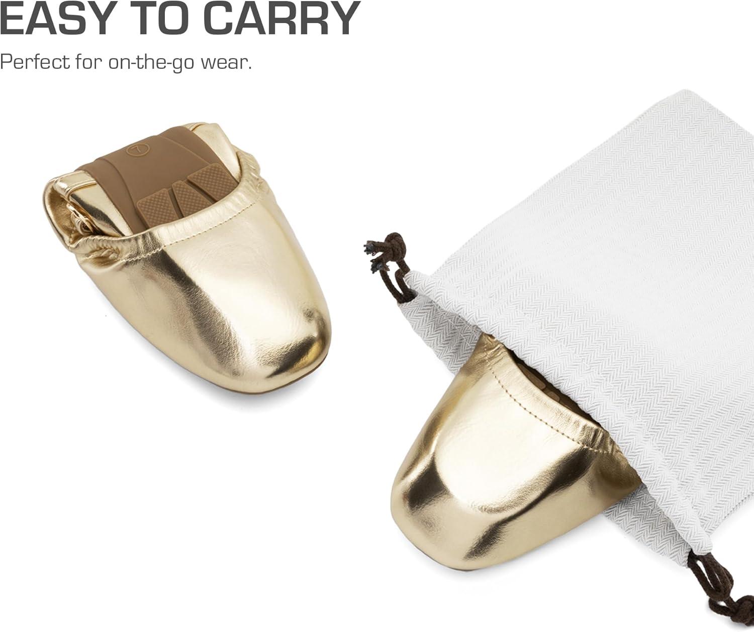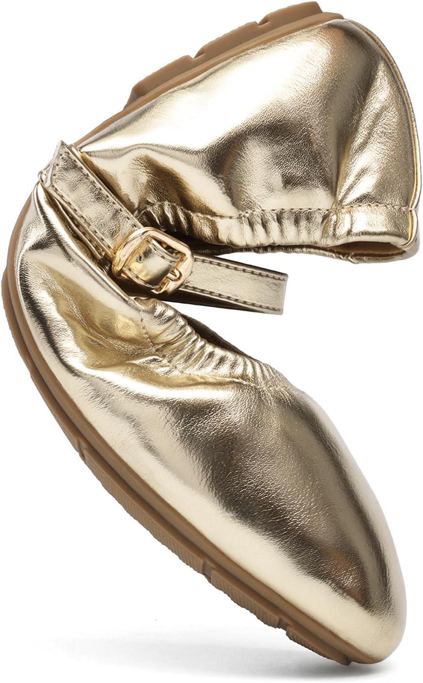 DREAM PAIRS Women's Ballet Flats Foldable Square Toe Mary Jane Flats Comfortable Slip On Dress Shoes Business Casual Work Mary Jane Shoes(Gold)