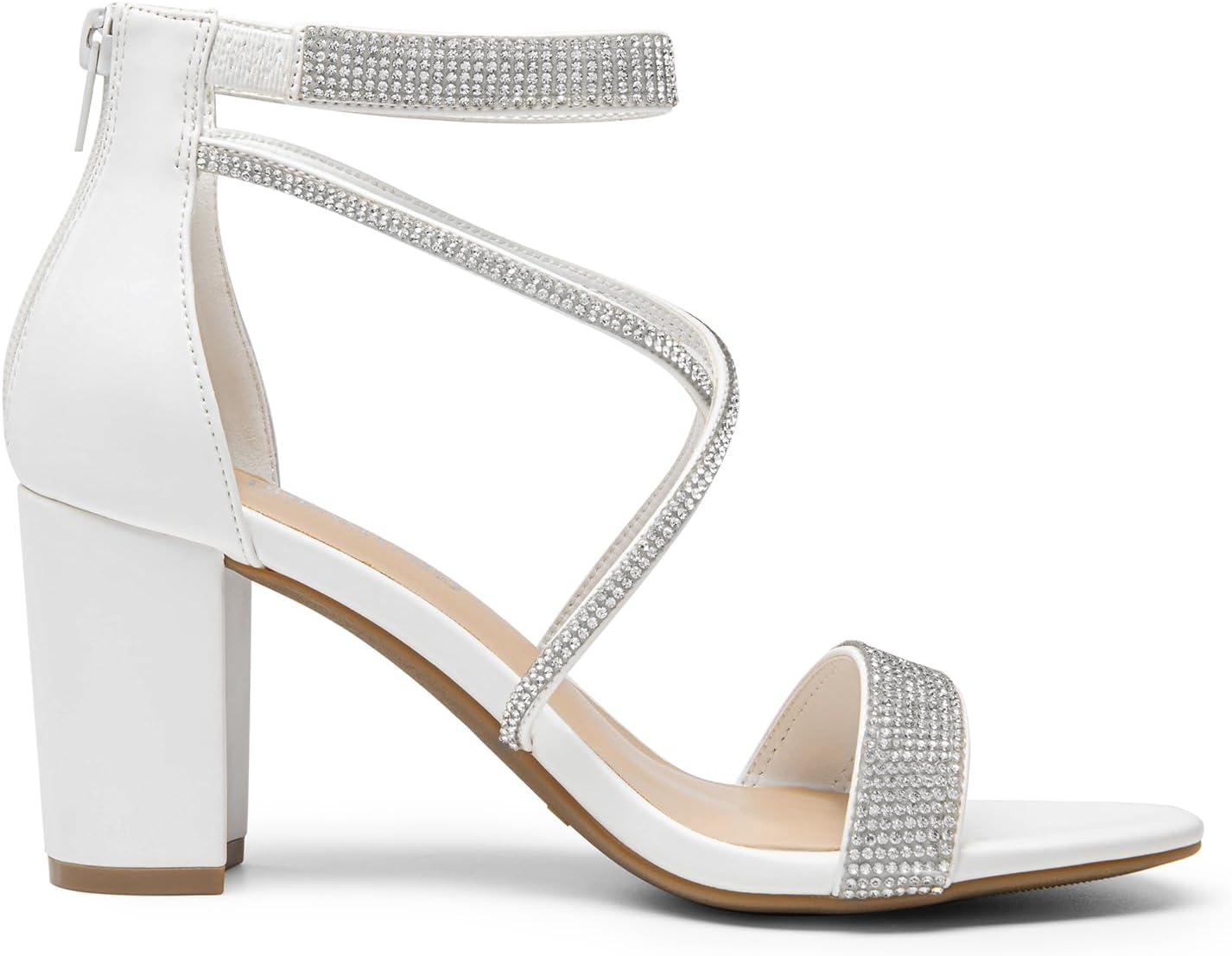 DREAM PAIRS Women’s Chunk Low Heel Pump Sandals(All White-pu)