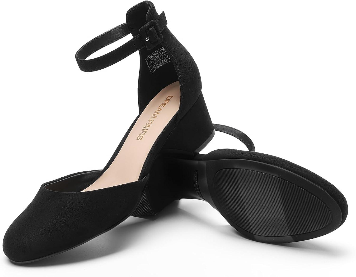 imageDREAM PAIRS Womens Closed Round Toe Low Block Heels Ankle Strap Chunky Heel Pumps Dress Wedding Office Party ShoesBlackpu