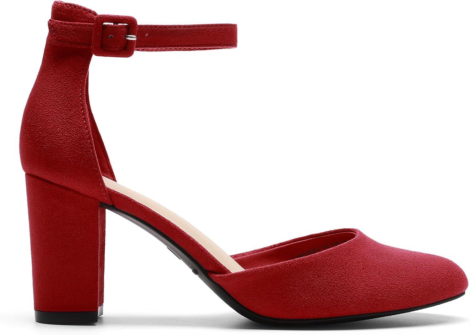 DREAM PAIRS Women's Closed Toe Chunky Heels Ankle Strap Low Block Heels Round Toe Dress Bridal Wedding Pumps Shoes(Red)