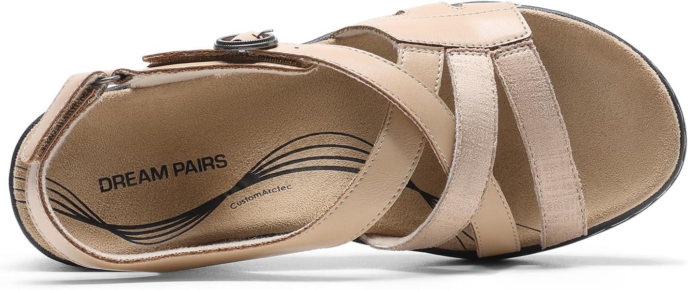 DREAM PAIRS Women's Comfortable Arch Support Wedge Sandals Open Toe Summer Walking Shoe(Nude)