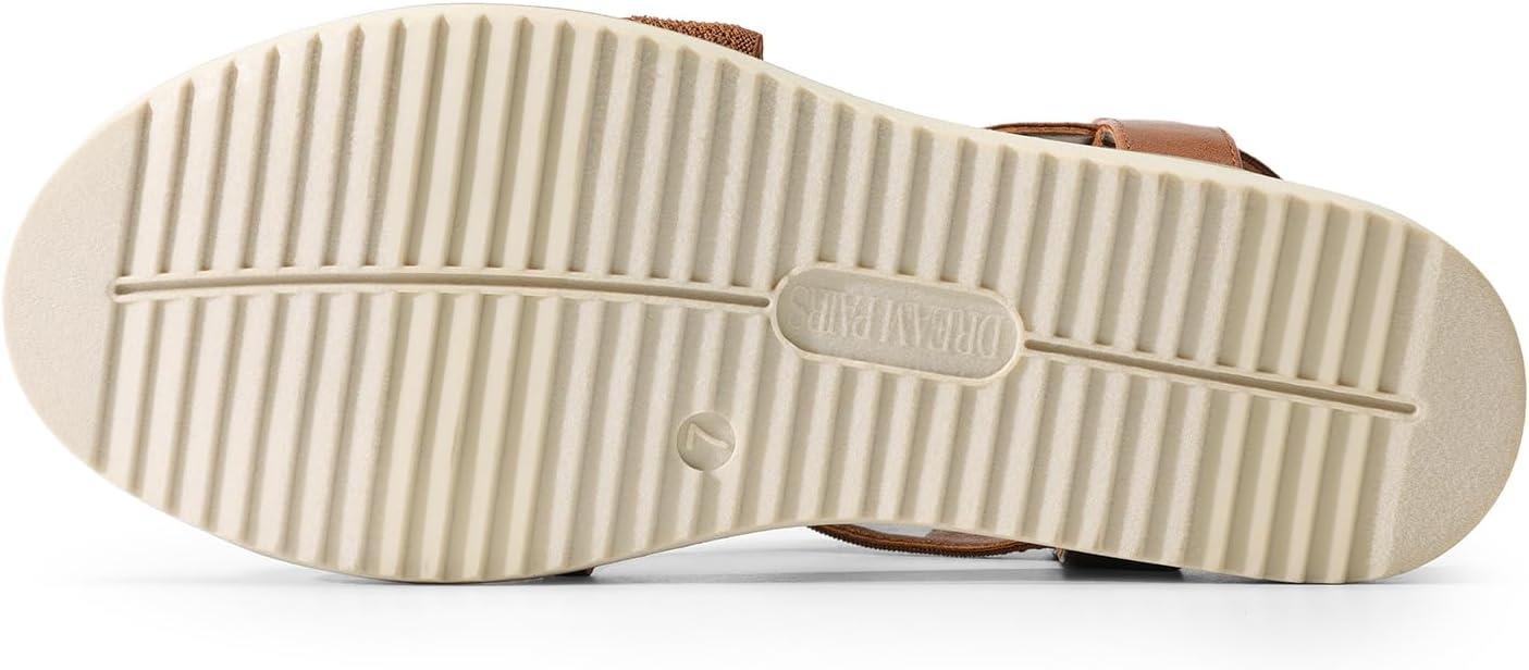 DREAM PAIRS Women's Comfortable Low Wedge Sandals, Open Toe Slip On Strappy Flat Sandals Light-weight Summer Shoes(Brown)