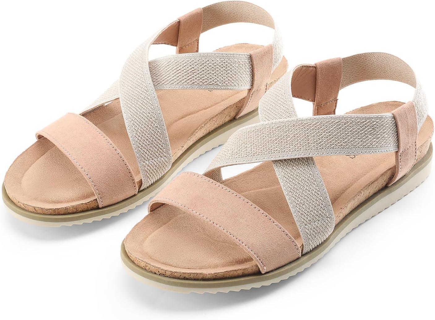 imageDREAM PAIRS Womens Comfortable Low Wedge Sandals Open Toe Slip On Strappy Flat Sandals Lightweight Summer ShoesNude
