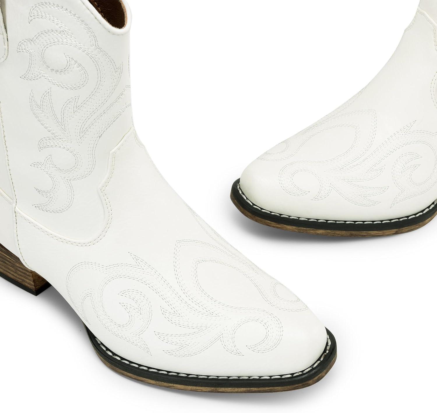 Get your hands on our exclusive DREAM PAIRS Women’s Cowboy Cowgirl Western Boots Embroidered Stitched Ankle Boots Square Toe Chunky Heel Fashion Short Booties with Zipper(White) collection, now at a discounted price.