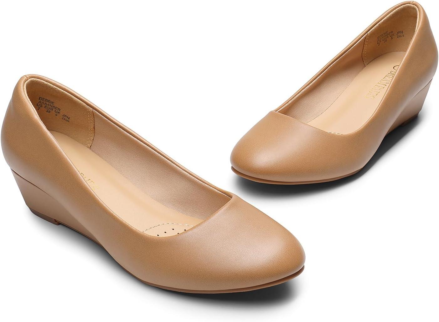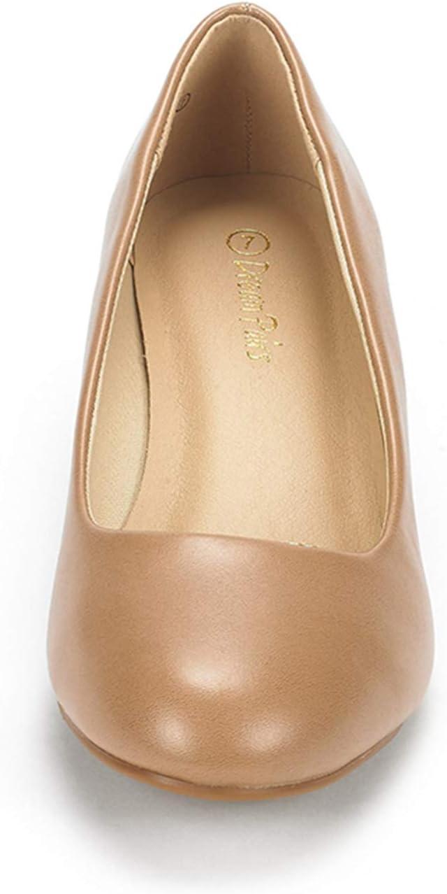 DREAM PAIRS Women’s Debbie Mid Wedge Heel Pump Shoes(Nude/Pu)