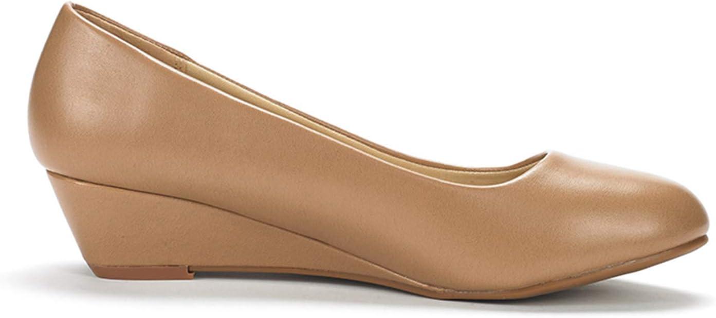 DREAM PAIRS Women's Debbie Mid Wedge Heel Pump Shoes(Nude/Pu)