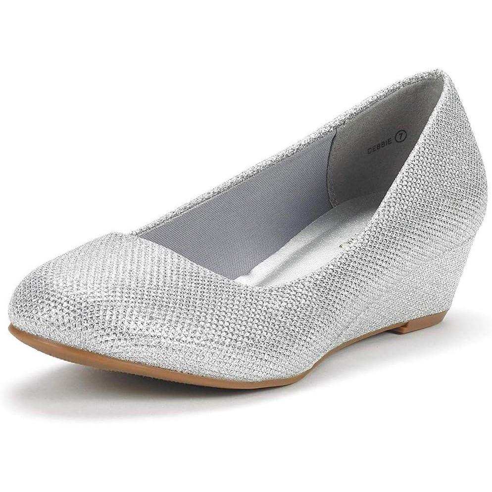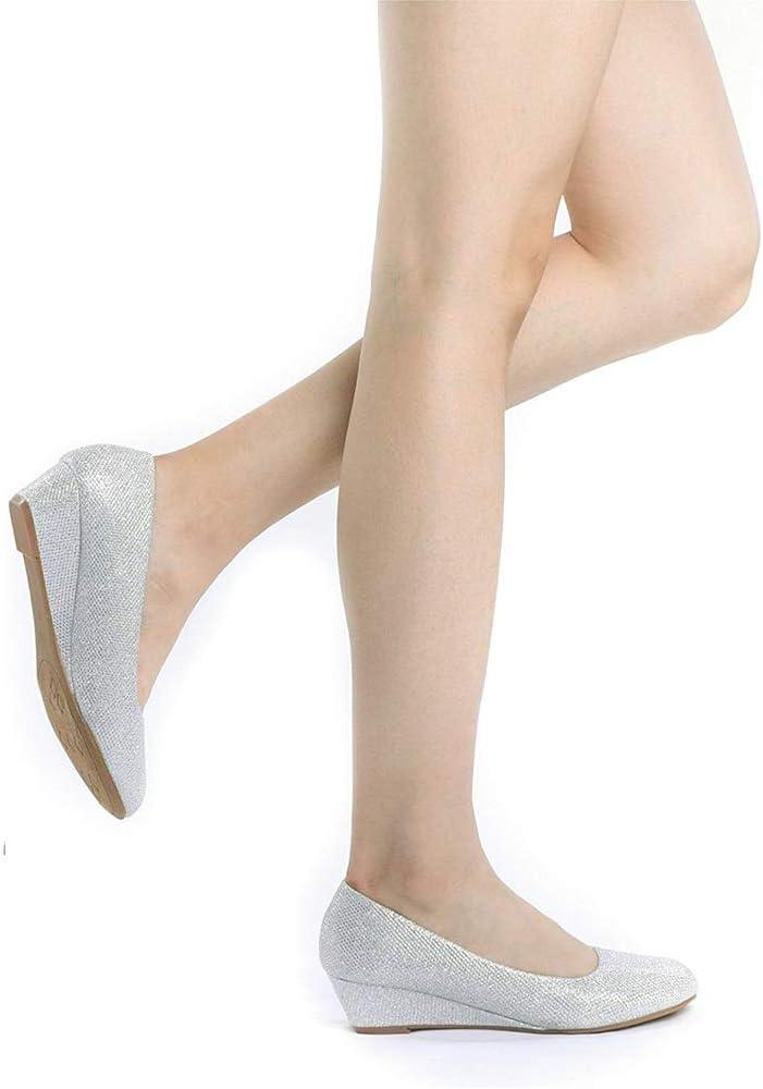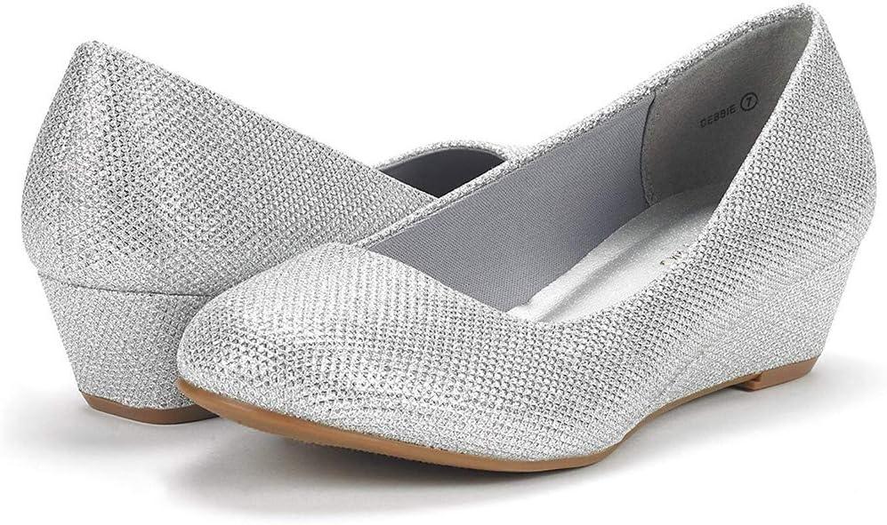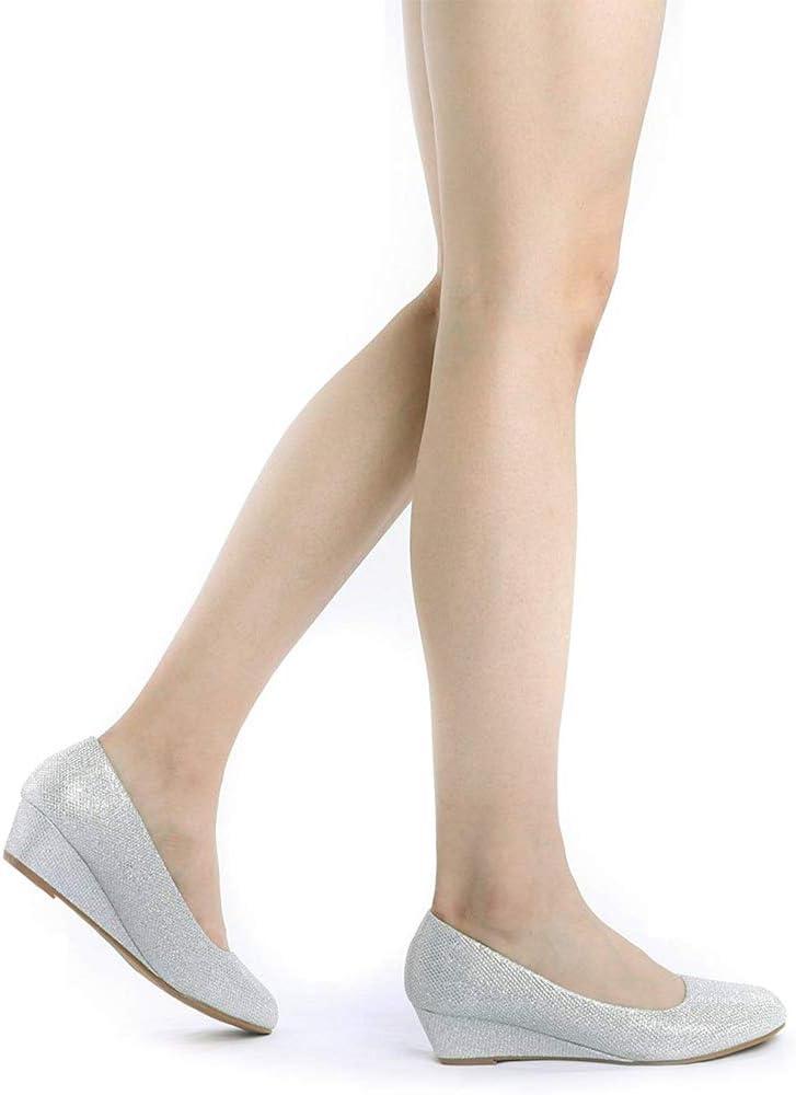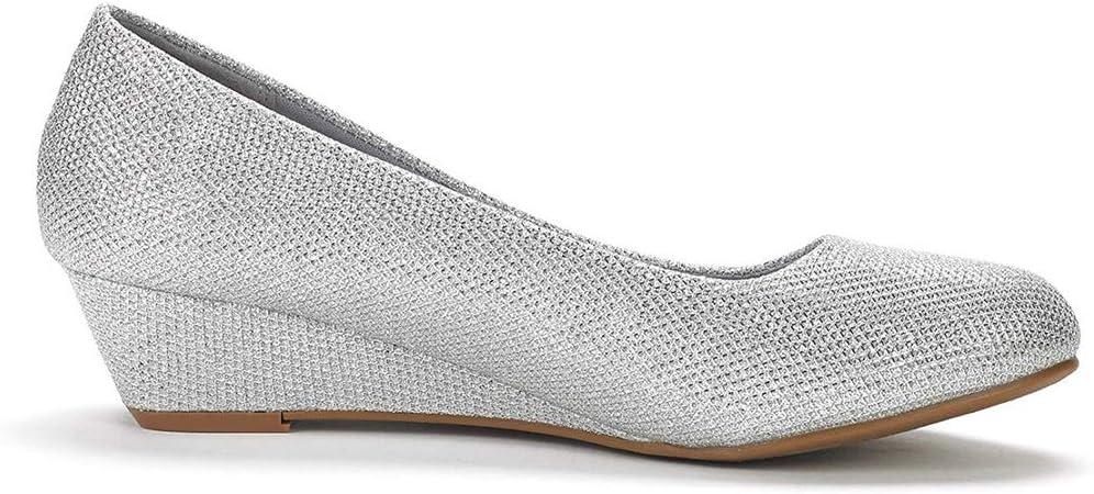 DREAM PAIRS Women's Debbie Mid Wedge Heel Pump Shoes(Silver/Glitter)
