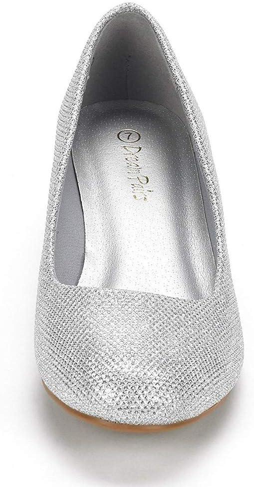 DREAM PAIRS Women’s Debbie Mid Wedge Heel Pump Shoes(Silver/Glitter)