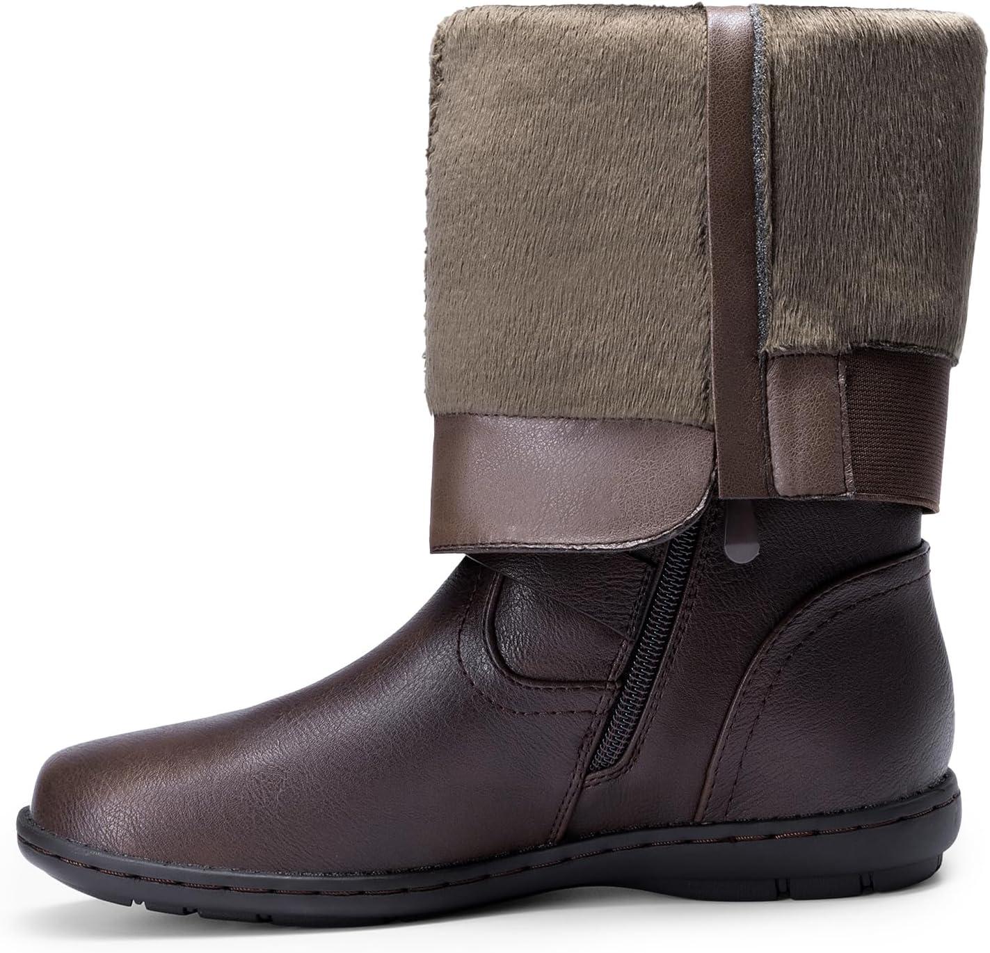DREAM PAIRS Women's Faux Fur-Lined Knee High Winter Boots Fall Tall Boots(Trace-wide-calf-brown)