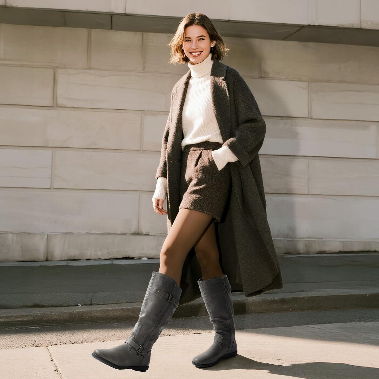 DREAM PAIRS Women’s Faux Fur-Lined Knee High Winter Boots Fall Tall Boots(Trace-wide-calf-grey)