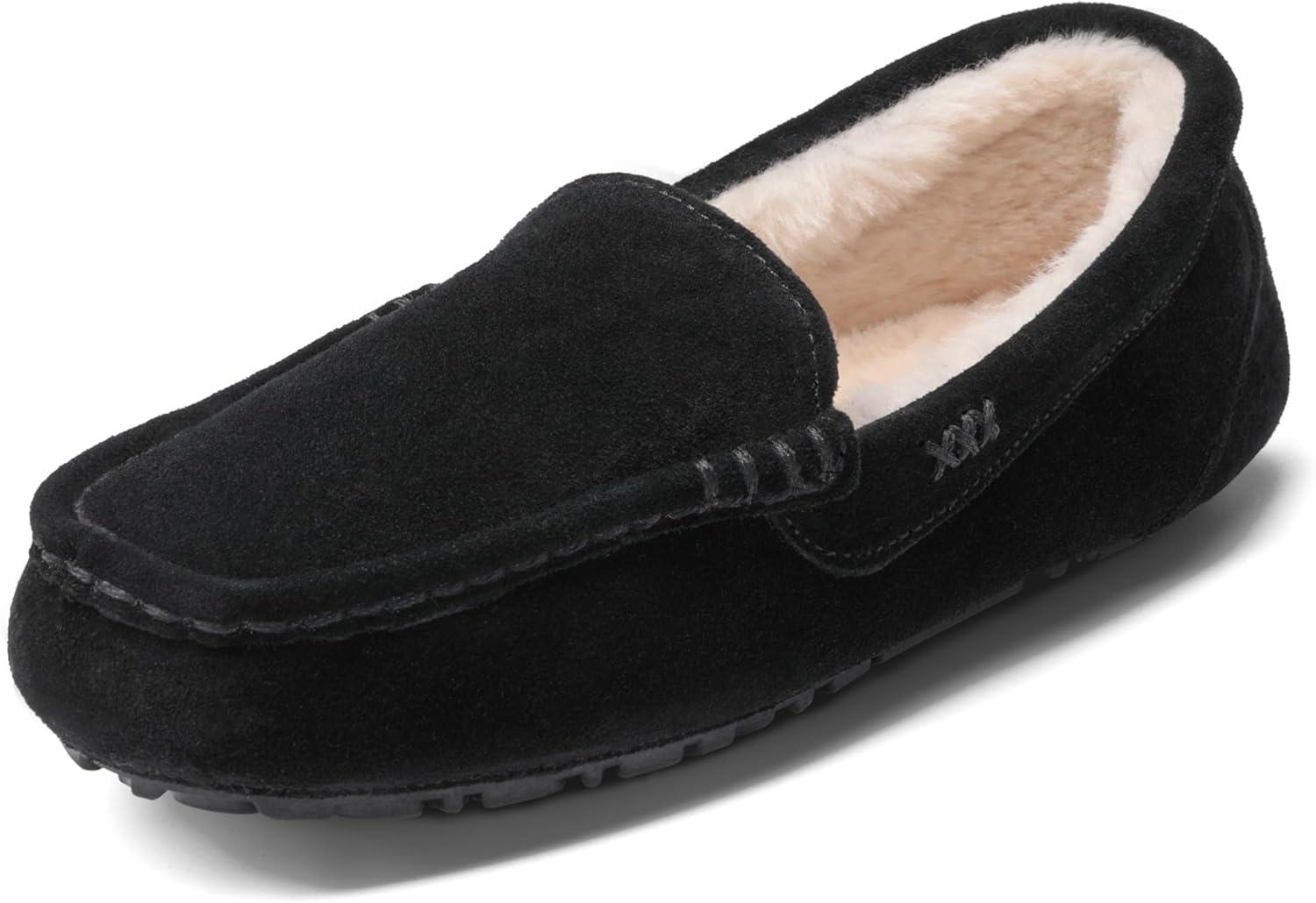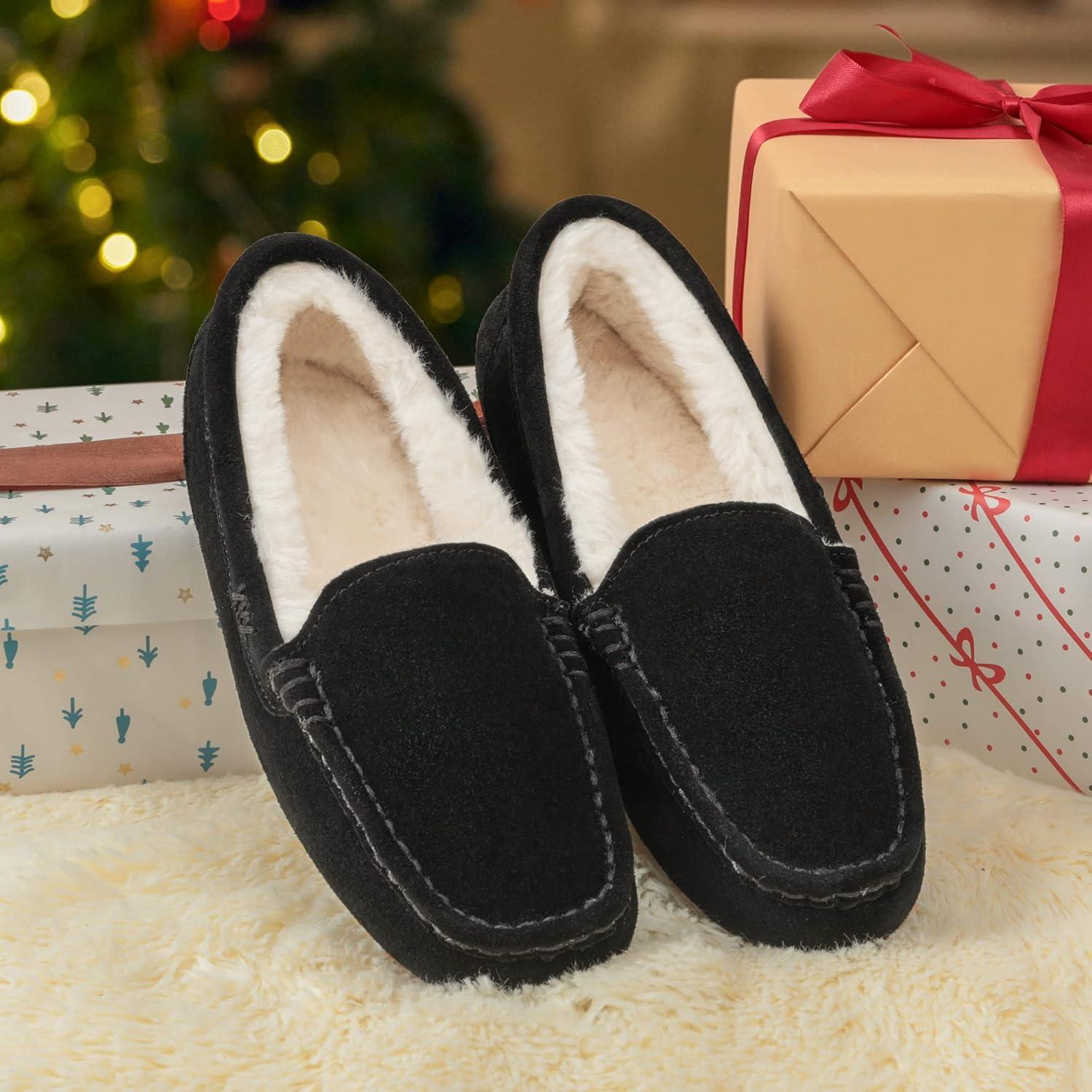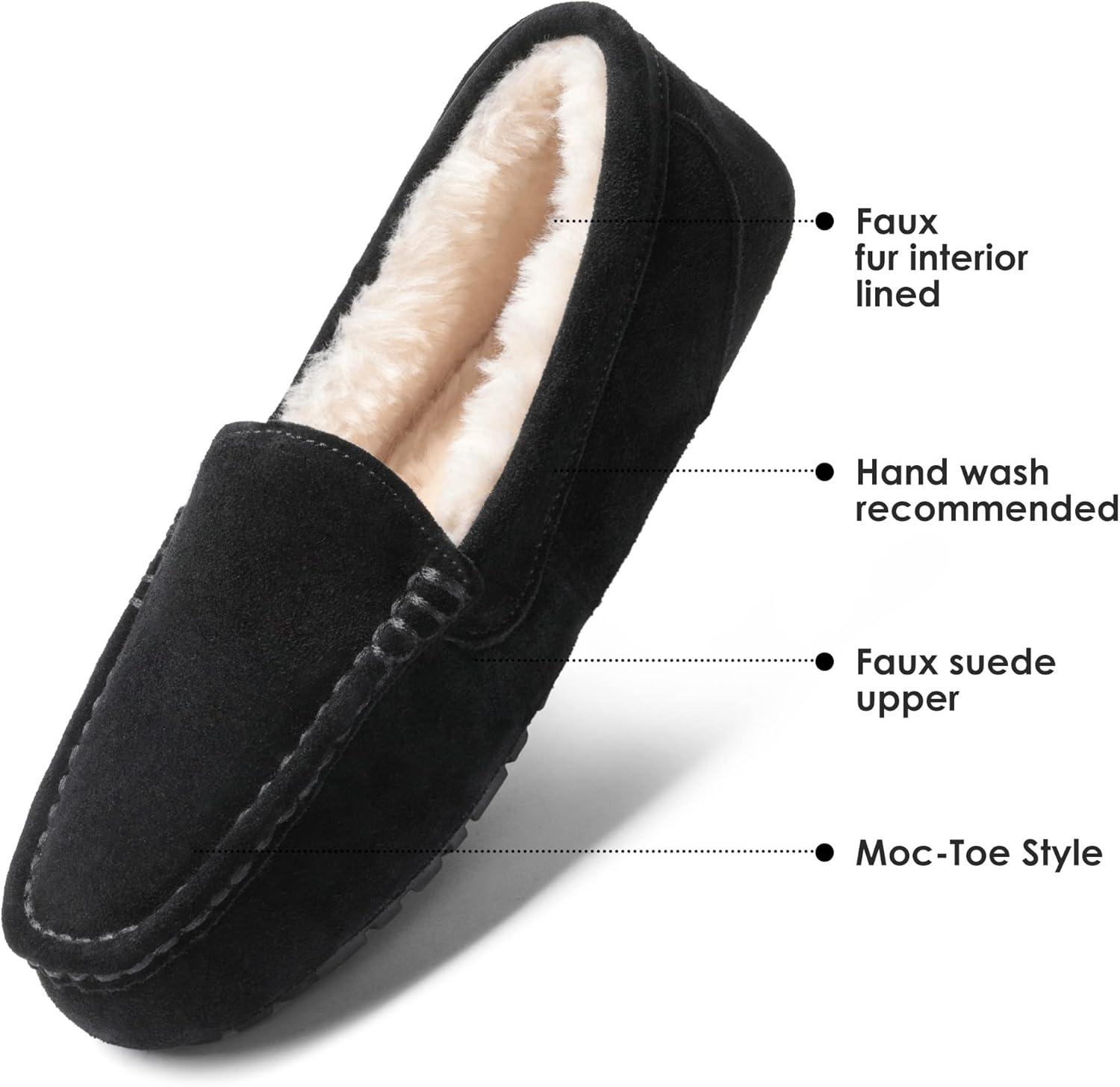 DREAM PAIRS Women’s Fuzzy House Slippers Cozy Faux Fur Micro Suede Moccasins Slip on Loafer Shoes for Indoor and Outdoor(Black)