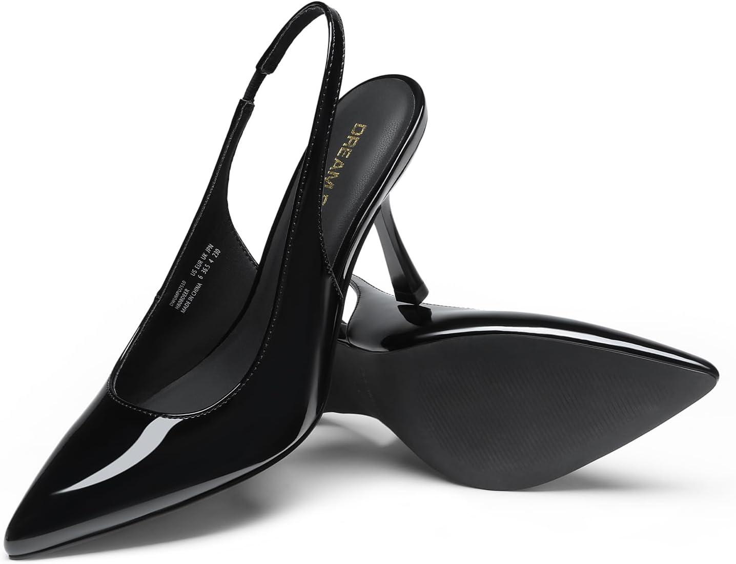 imageDREAM PAIRS Womens Heels Slingback Stiletto Pumps Shoes Pointed Closed Toe Kitten Heels Dress Bridal Elegant Wedding Sexy PartyBlackpat