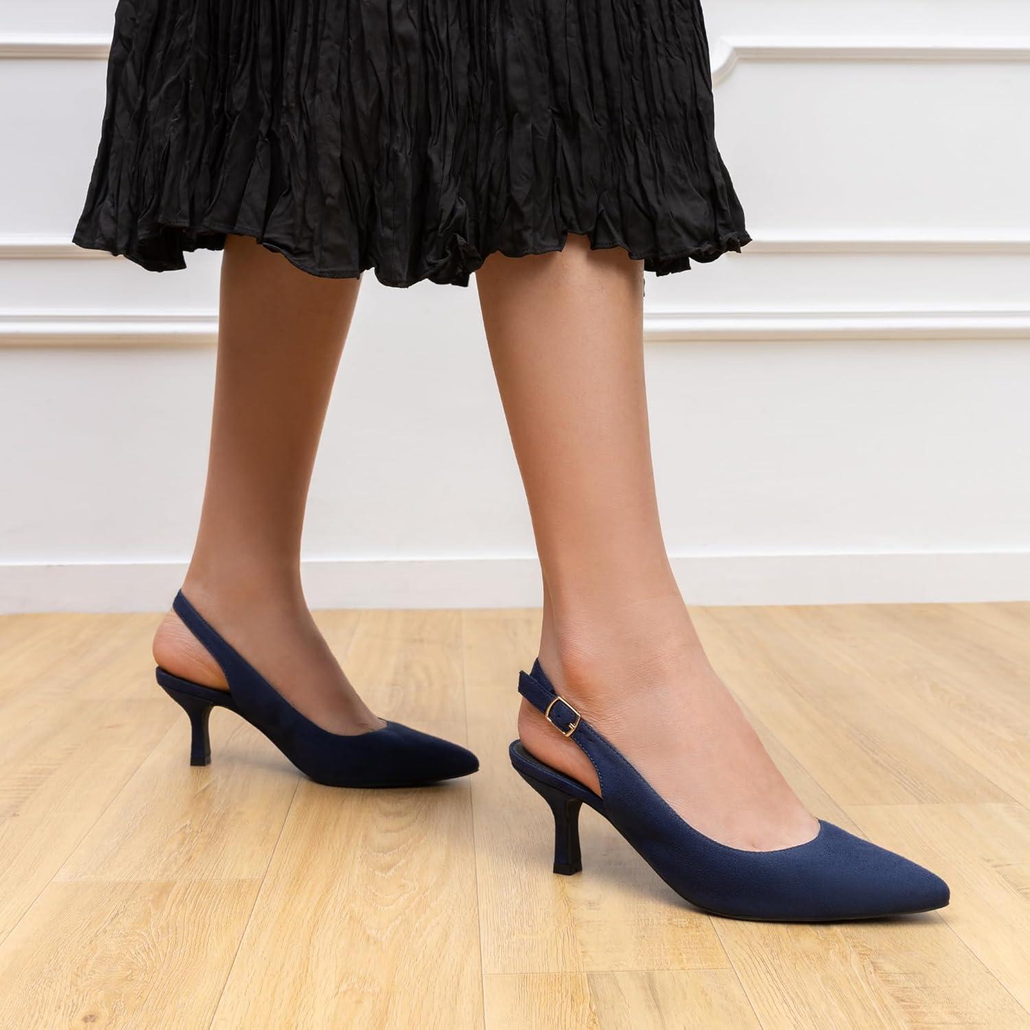 DREAM PAIRS Women's Kitten Heel Slingback Pointed Closed Toe Low Stiletto Heels Dress Bridal Elegant Wedding Pumps Shoes(Navy-suede-1)