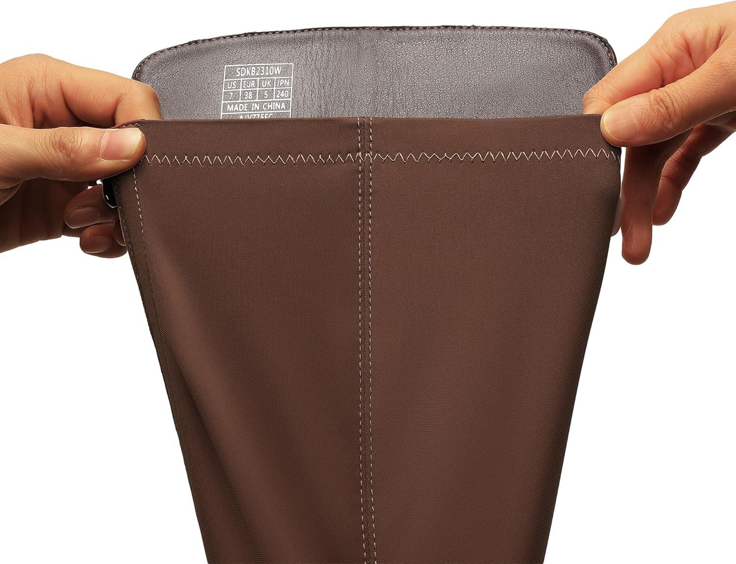 DREAM PAIRS Women’s Knee High Boots, Comfortable Platform Round Toe Stretch Boots for Women(Brown-pu)