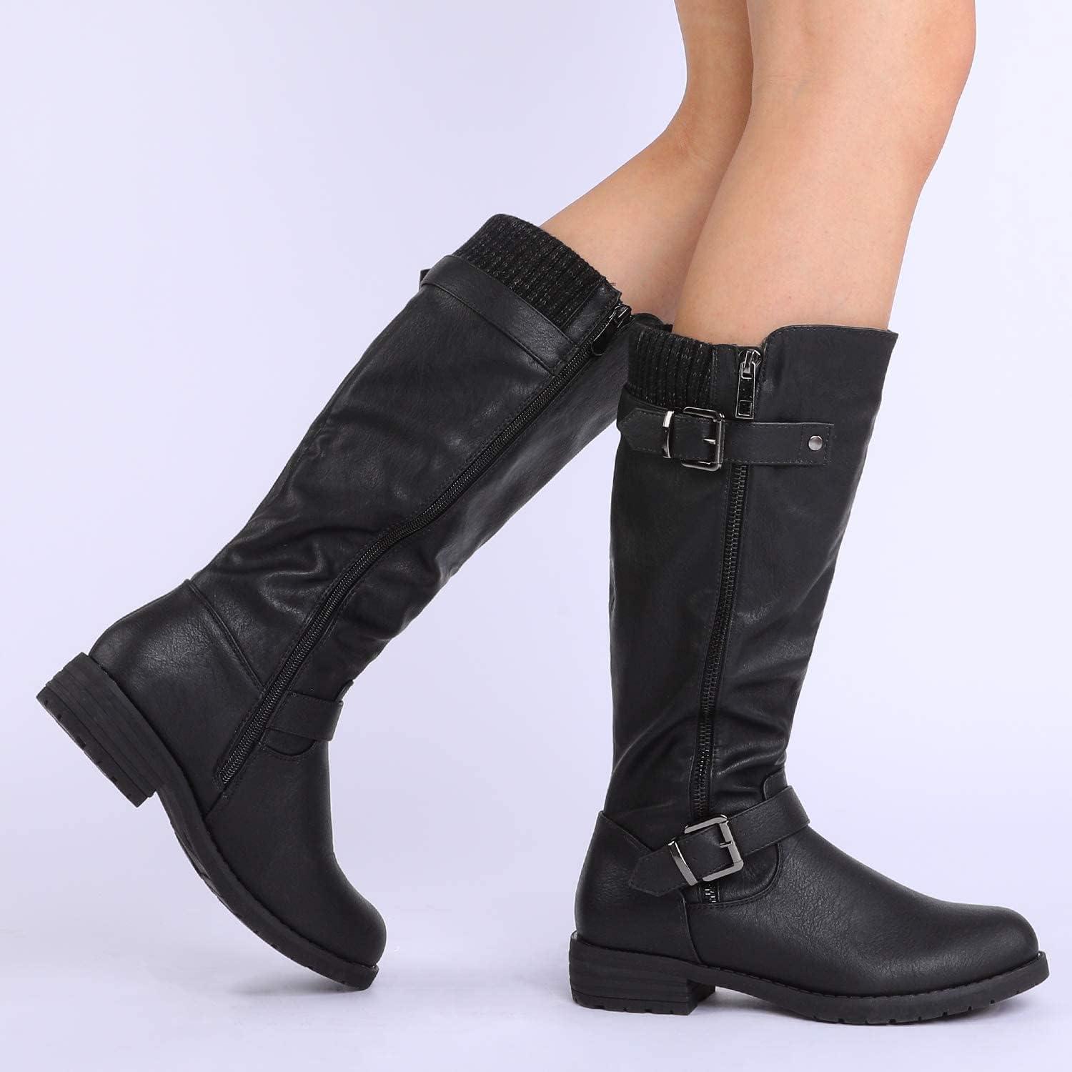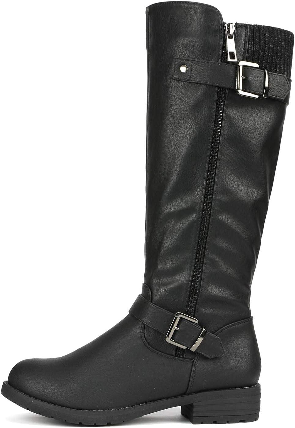 DREAM PAIRS Women's Knee High Boots Comfortable Riding Boots Side Zipper Fall Boots with Buckle(Black)