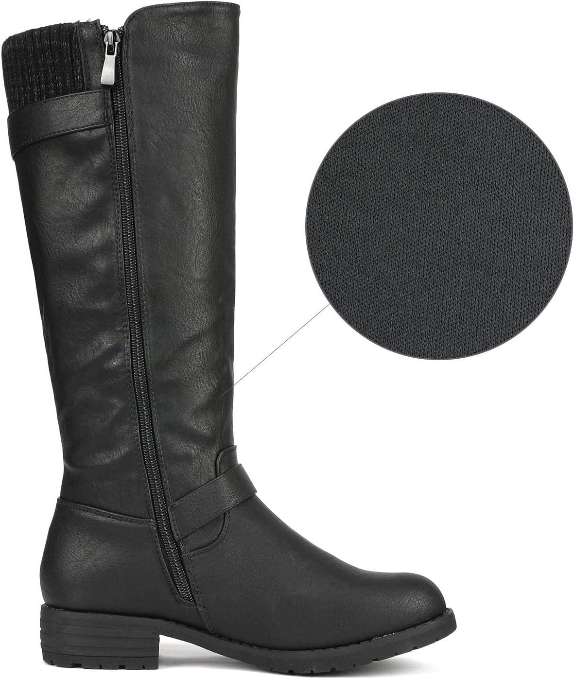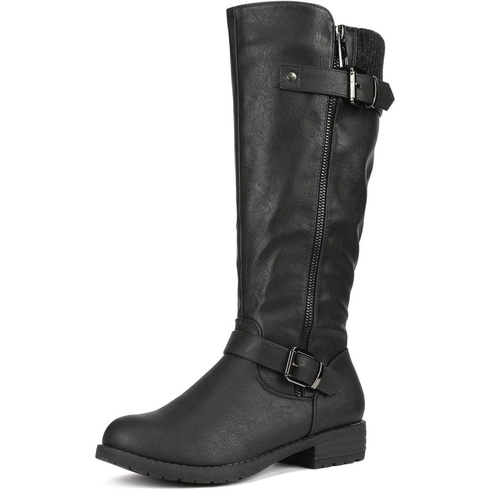 DREAM PAIRS Women’s Knee High Boots Comfortable Riding Boots Side Zipper Fall Boots with Buckle(Black)
