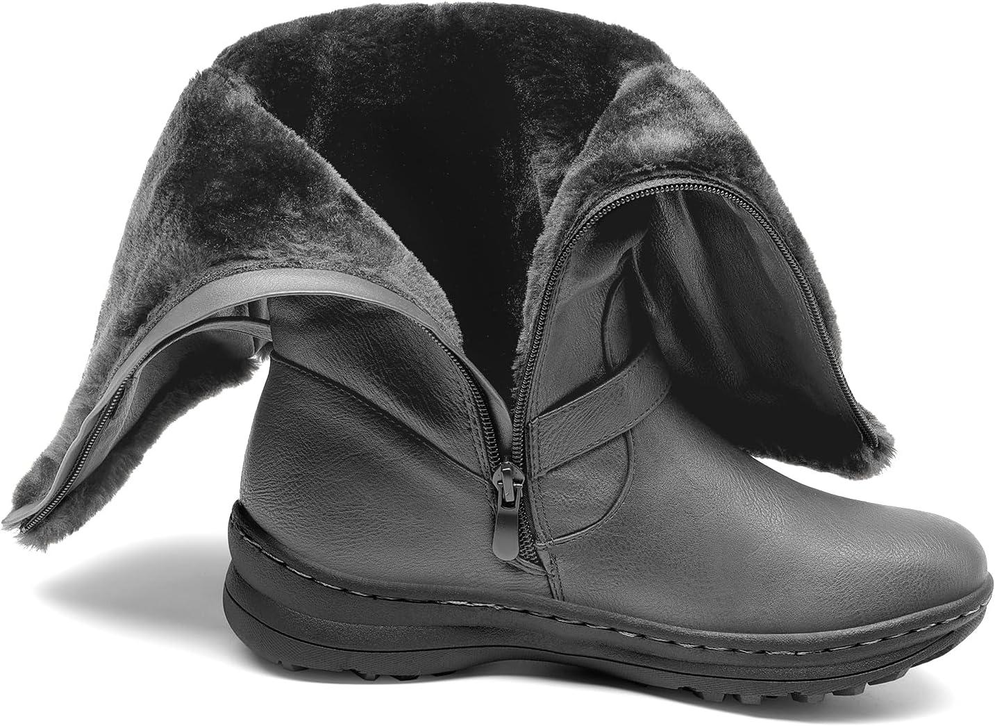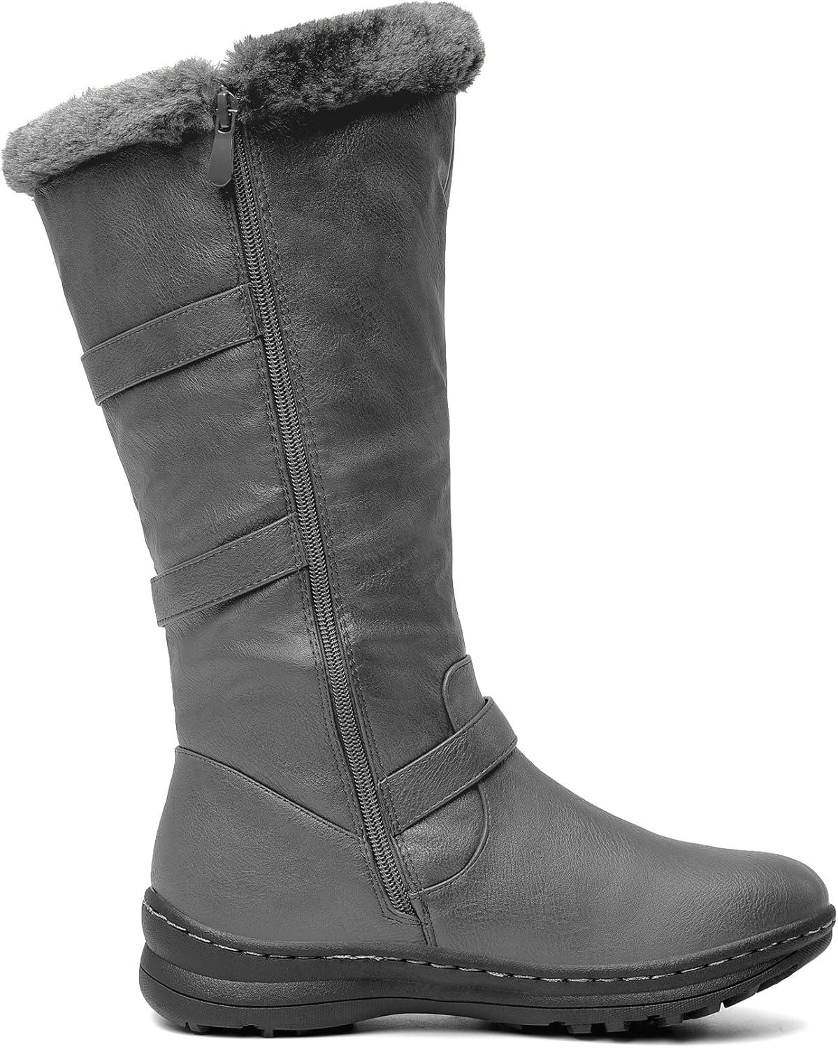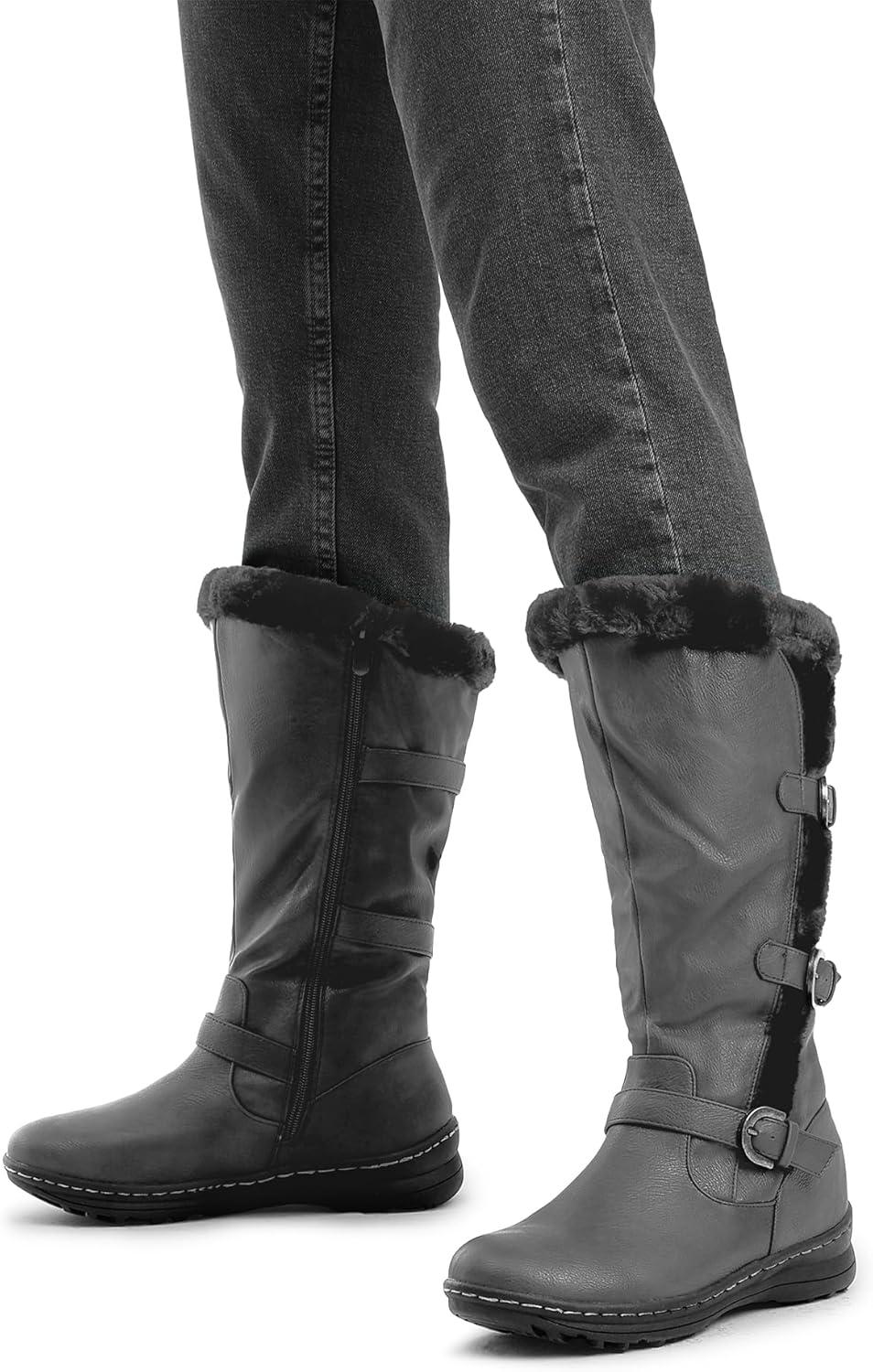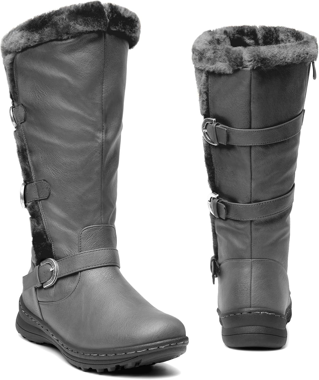 DREAM PAIRS Women's Knee High Boots Thick Faux Fur Lined Winter Snow Warm Boots with Zipper(Grey)