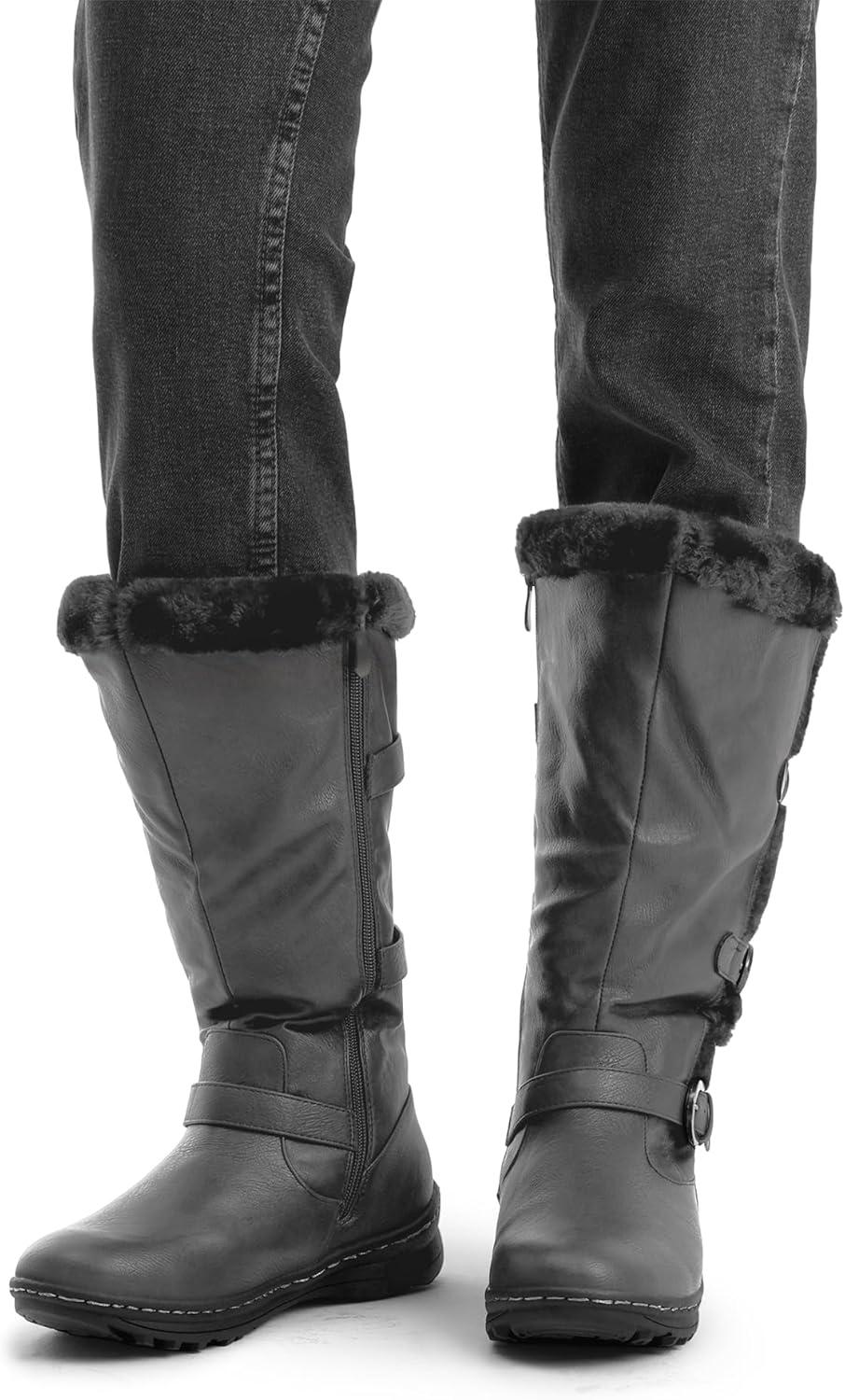 imageDREAM PAIRS Womens Knee High Boots Thick Faux Fur Lined Winter Snow Warm Boots with ZipperMinxBlackPu