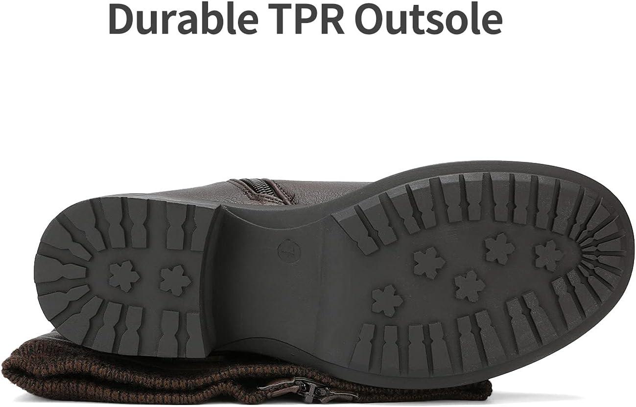 DREAM PAIRS Women’s Knee High Boots Wide Calf Low Heel Riding Boots Fall Tall Boots for Women(Brown Pu-wide-calf)