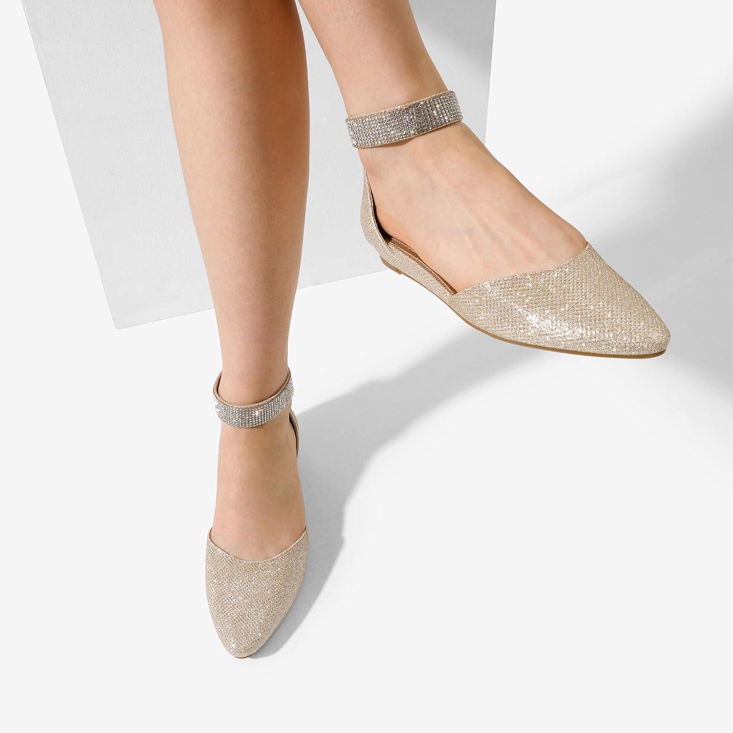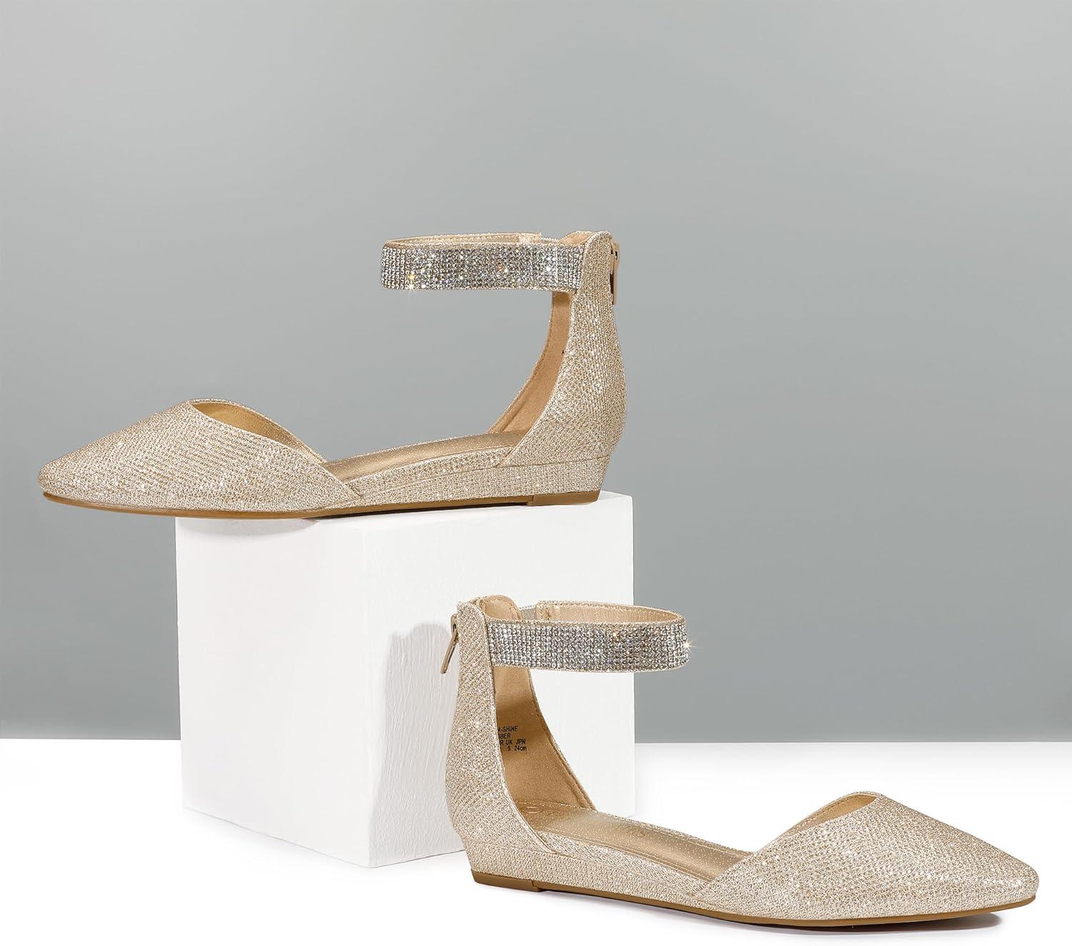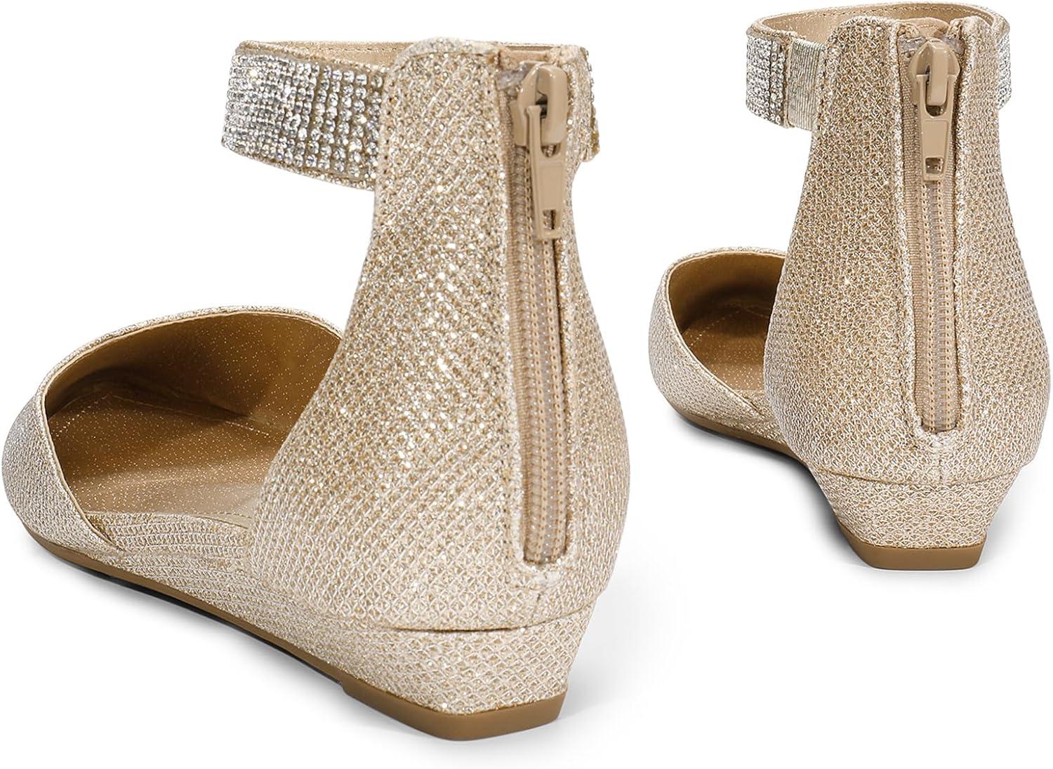 DREAM PAIRS Women’s Low Wedge Round Toe Ankle Strap Dress Comfortable Casual Flats Shoes(Gold/Glitter)