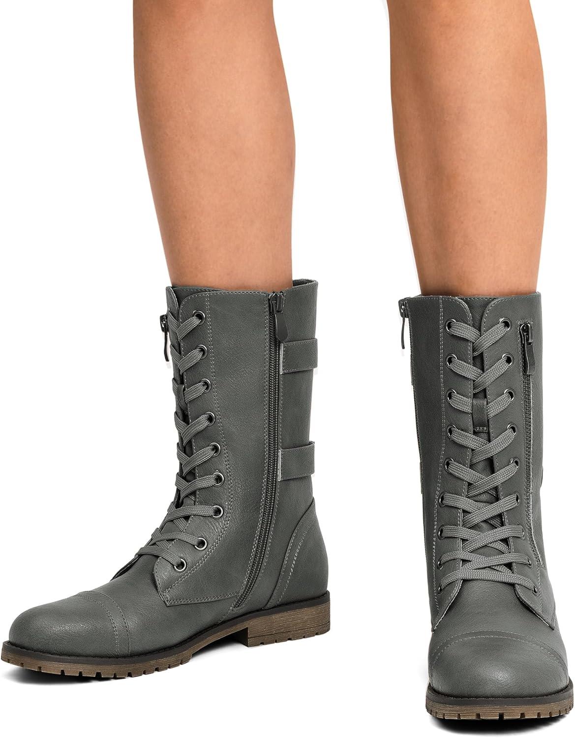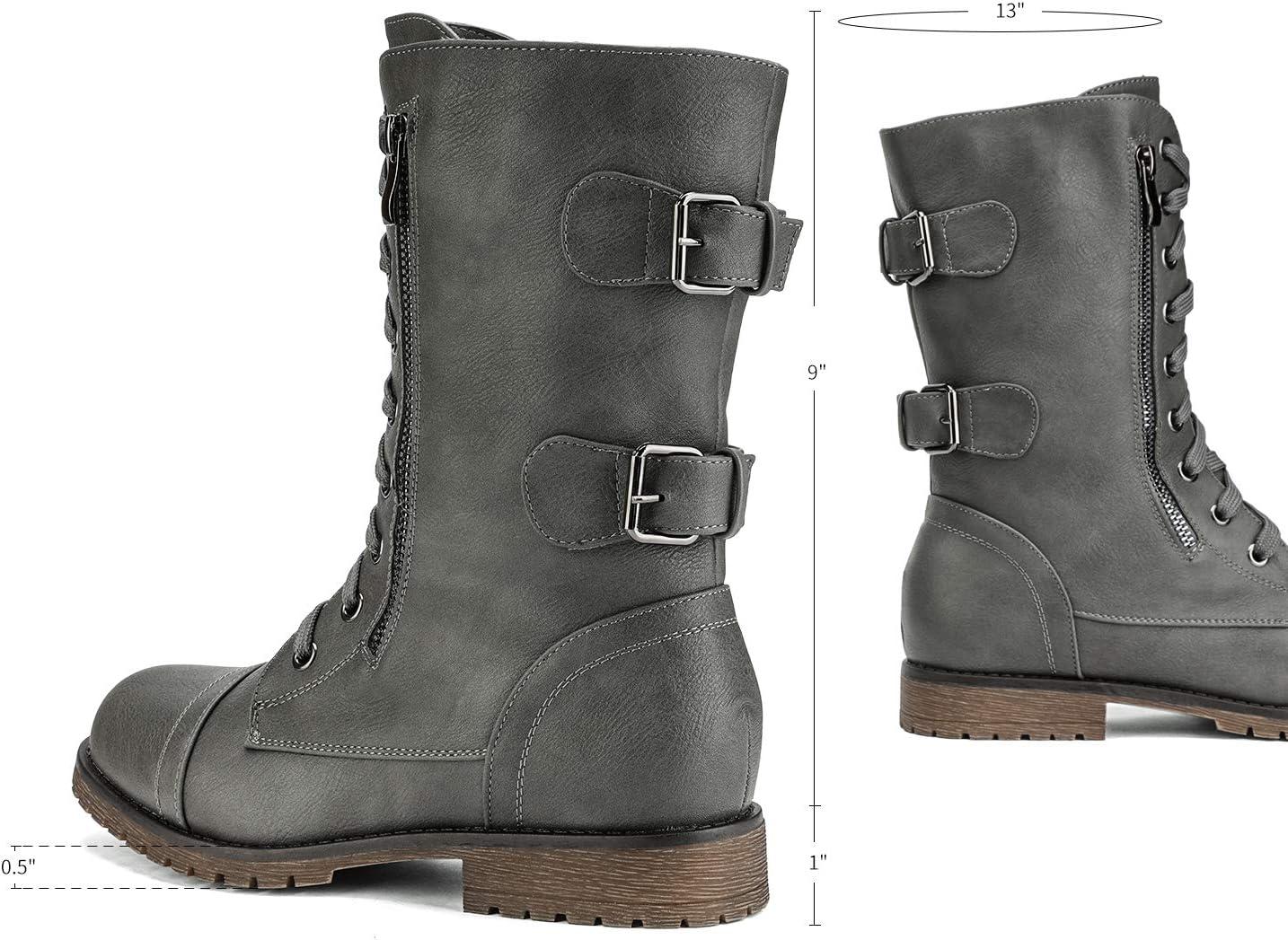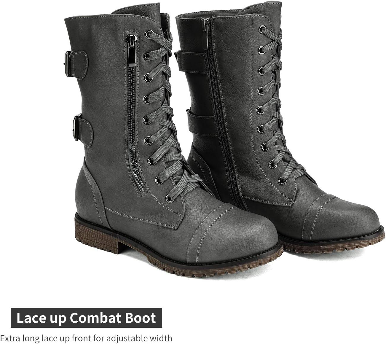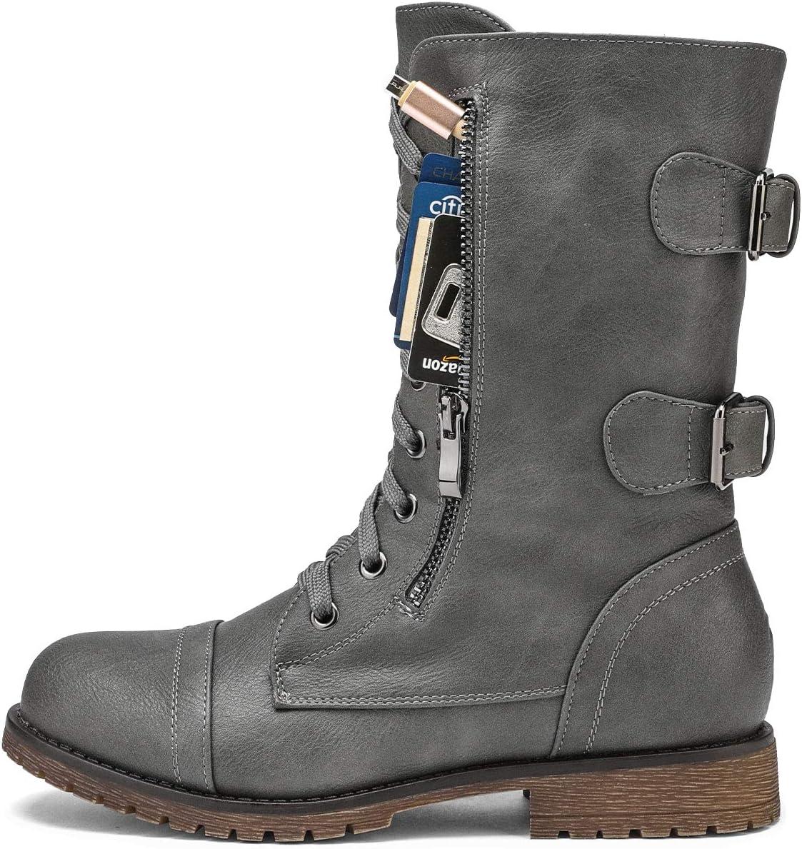 imageDREAM PAIRS Womens Mid Calf Builtin Wallet Pocket Lace up Military Combat BootsClassic Grey